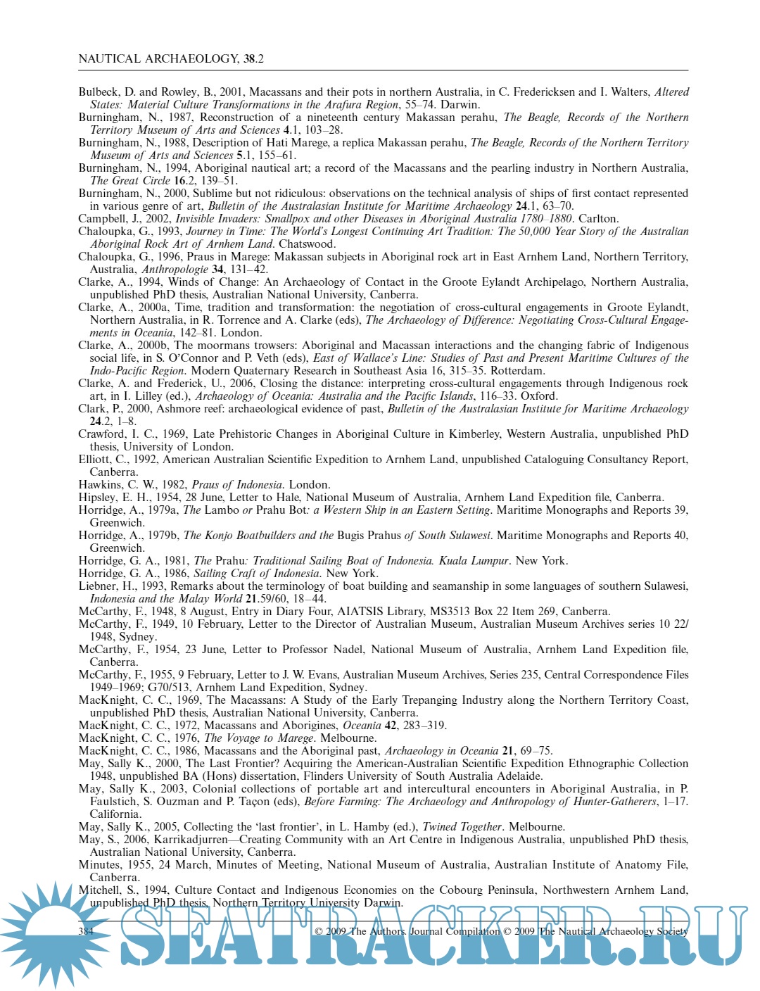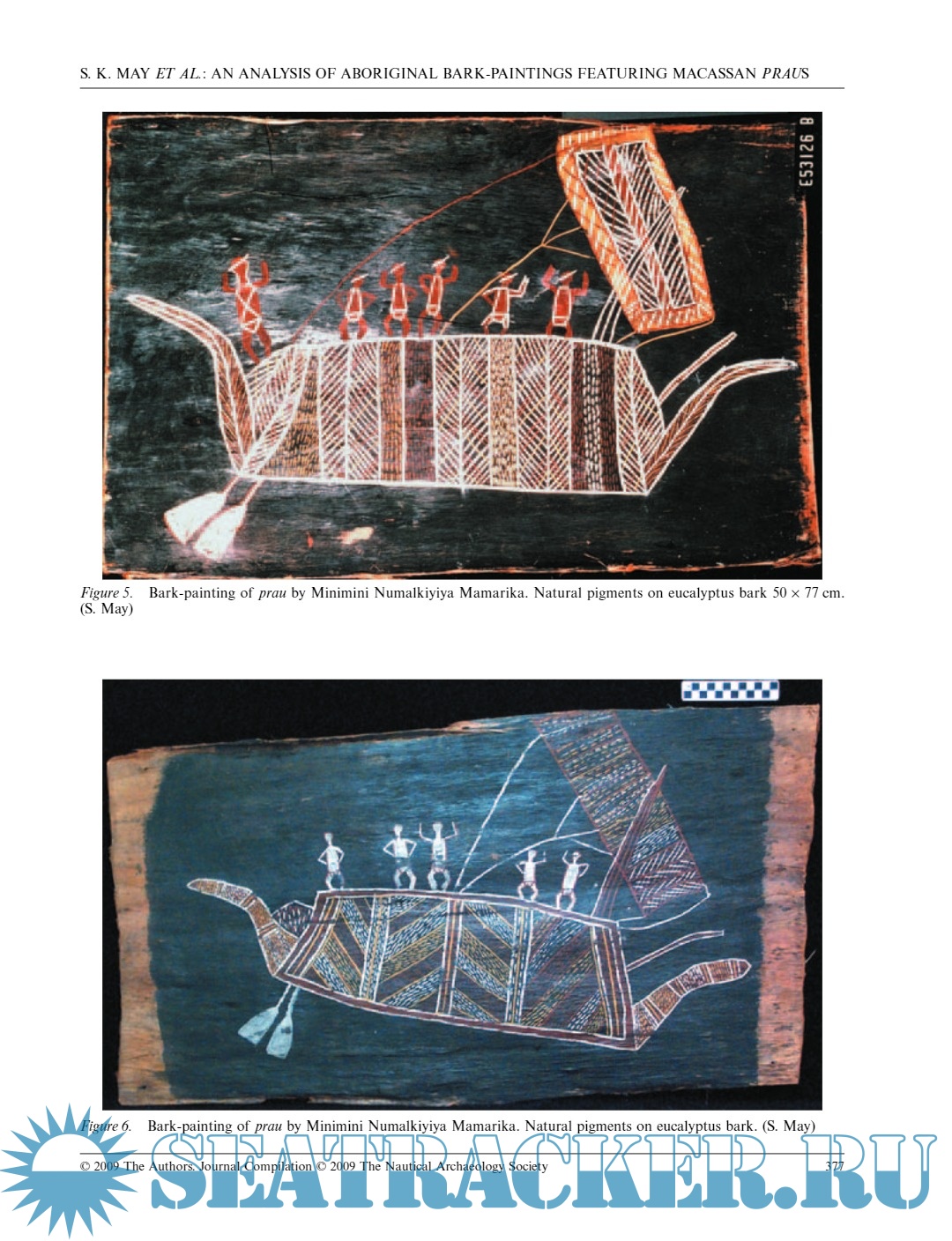Year: 2009 Language: English Author: Sally K. May; Jennifer F. McKinnon; Jason T. Raupp Genre: Art, Historical, Art Format: PDF Quality: eBook Pages count: 17 Description: This paper examines a group of Aboriginal bark-paintings featuring Macassan praus that were collected in 1948 during the American-Australian Scientific Expedition to Arnhem Land. These paintings were studied in an effort to understand issues related to Aboriginal and Macassan cross-cultural interaction, stylistic adaptation and change, and maritime technologies. Furthermore, it is one example in which the collaborative efforts of maritime and Indigenous archaeologies can achieve a more holistic technological and stylistic cross-analysis of watercraft imagery.