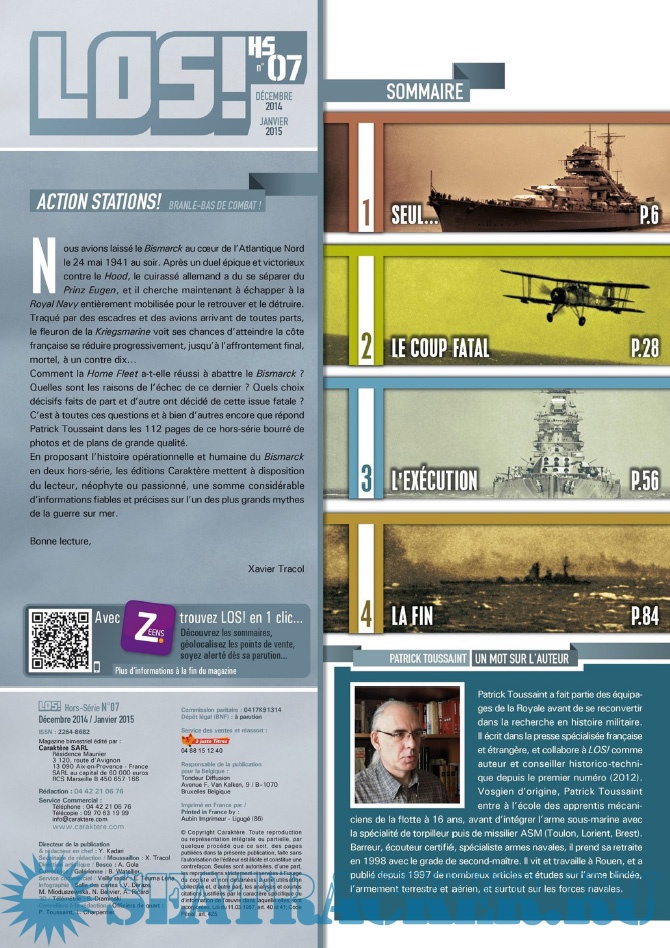 Description: LES ÉDITIONS CARAKTÈRE PRENNENT LE LARGE EN LANÇANT UN NOUVEAU MAGAZINE CONSACRÉ À LA GUERRE NAVALE !Les sujets passionnants ne manquent pas et LOS ! met un point d’honneur à les présenter au lecteur comme cela n’a jamais été fait dans la presse française jusqu’à présent. Un seul mot d’ordre pour l’équipe rédactionnelle : rigueur scientifique et présentation ludique !S’appuyant sur un fond photographique d’exception, sur des plans de bateaux et d’avions, les éditions Caraktère innovent une fois de plus en vous proposant aussi des vues 3D détaillées, le tout au service de textes soigneusement rédigés par des auteurs spécialisés. Vous comprendrez ainsi comment fonctionne un submersible, comment se déroule un combat naval, comment est conçu un cuirassé ou comment attaquent les avions-torpilleurs !Revivez au fil des pages l’aventure humaine exceptionnelle des matelots de la marine marchande affrontant les U-Boote en Arctique, ou celle des pilotes embarqués sur les porte-avions américains et japonais. Lisez les exploits des hommes-grenouilles italiens en Méditerranée, des équipages des vedettes lance-torpilles dans la Manche, des sous-marins soviétiques de la guerre froide ou des grands cuirassés de 1914-18