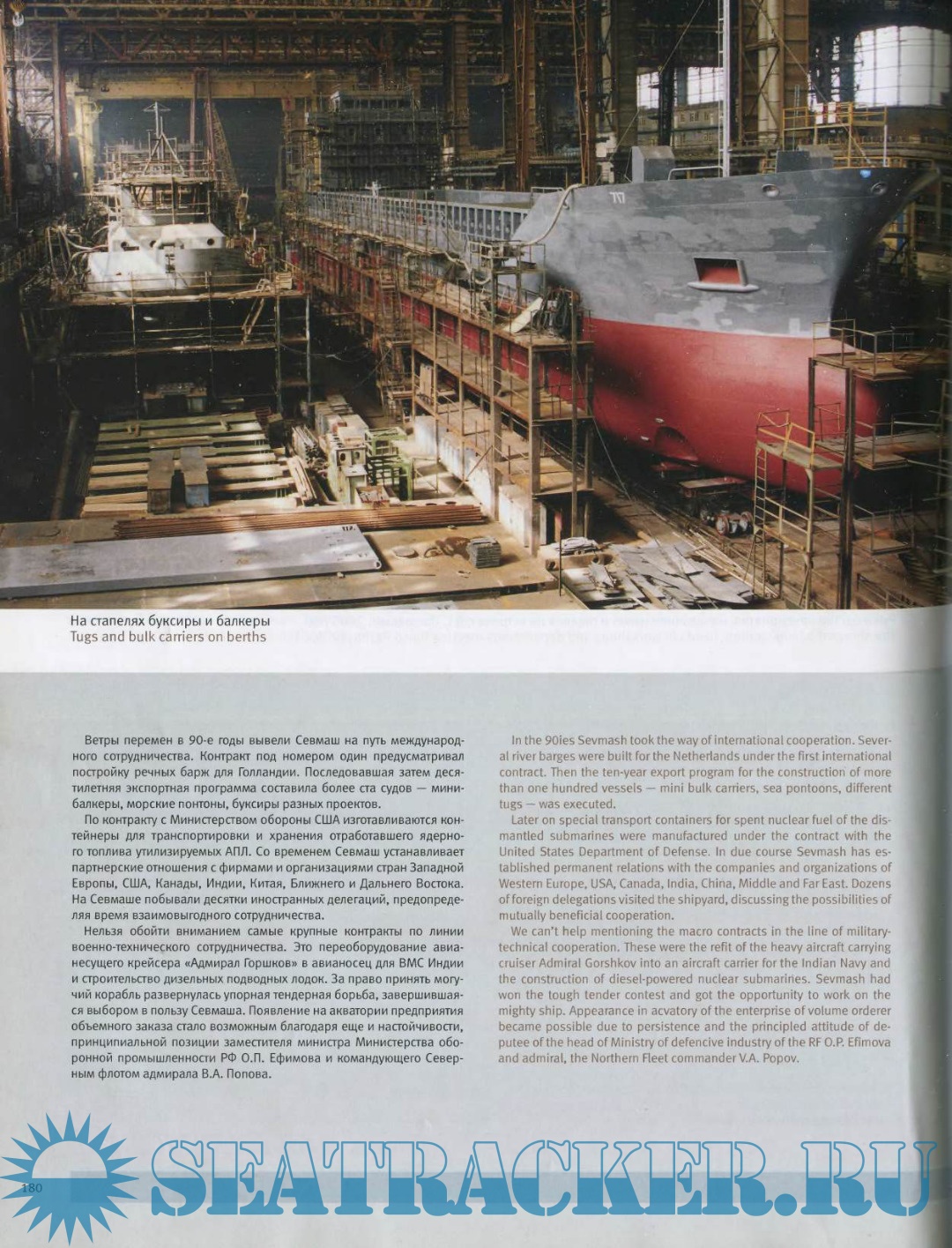 This is a book and photo album «Russian North Outpost», an illustrated history of the largest Russian shipyard Sevmash. An exceptionally favourable location of the yard predetermined its destiny. Just as four and a half centuries ago the Nikolo-Korelsky Monastery, being currently the shipyard's temple, became the first sea port of Russia, so during the Great Patriotic war the yard still under construction became the main White sea port receiving the lend-lease cargoes, and after the war it turned into a cradle of Russian nuclear fleet. Looking through the album one can get acquainted with the milestones of a long history of shipbuilding in the Russian North, starting from first frigates of Peter the Great to modern missile carrying submarines. All this is the result of heroic labour of Pomors — proud and independent people who have subdued vast expanses of the Russian North. Having turned over the last page one cannot but arrive at an idea that rich spiritual heritage combined with high technologies is a guarantee of Sevmash's future success.