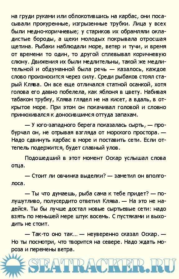 Год выпуска: 1979 Язык: Русский Автор: Лацис В. Жанр: Художественная литература Издательство: Маяк Издание: Морская библиотека Формат: FB2 Качество: Изначально компьютерное (eBook) Количество страниц: 676 Описание: Начиналось все почти как классическая сказка о Золушке, но в мужском варианте - брат обеспечивает нужды не только еще не старых родителей, но и сестру, которая уже не знает, какую еще обновку приобрести и брата, который учится в Риге, носит "городские" костюмы и конечно же на работу у него нет времени. Сам же главный герой, Оскар Клява, привык каждый день выходить в море, носить промасленную куртку и латать старые сапоги. Тяжелый, однообразный, а местами и вовсе трагический быт рыбачьей деревни, конечно, показан с почти этнографической достоверностью, включая пьянство, постоянные ссоры, вранье и нищету. На этом фоне Оскар выглядит как-то чересчур идеальным - почти не пьет, в конфликты до последнего не встревает, живет без долгов... Натурально, сказочный герой!