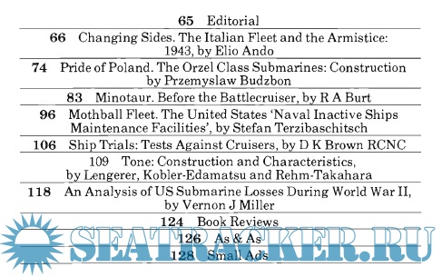 Year: 1987 Language: English Author: Grant I.(redactor). Genre: Periodical publication Format: PDF Quality: Scanned pages Pages count: 68 Description: This quarterly publication includes a wide range of feature articles devoted to the design, development and service history of the world's fighting ships.