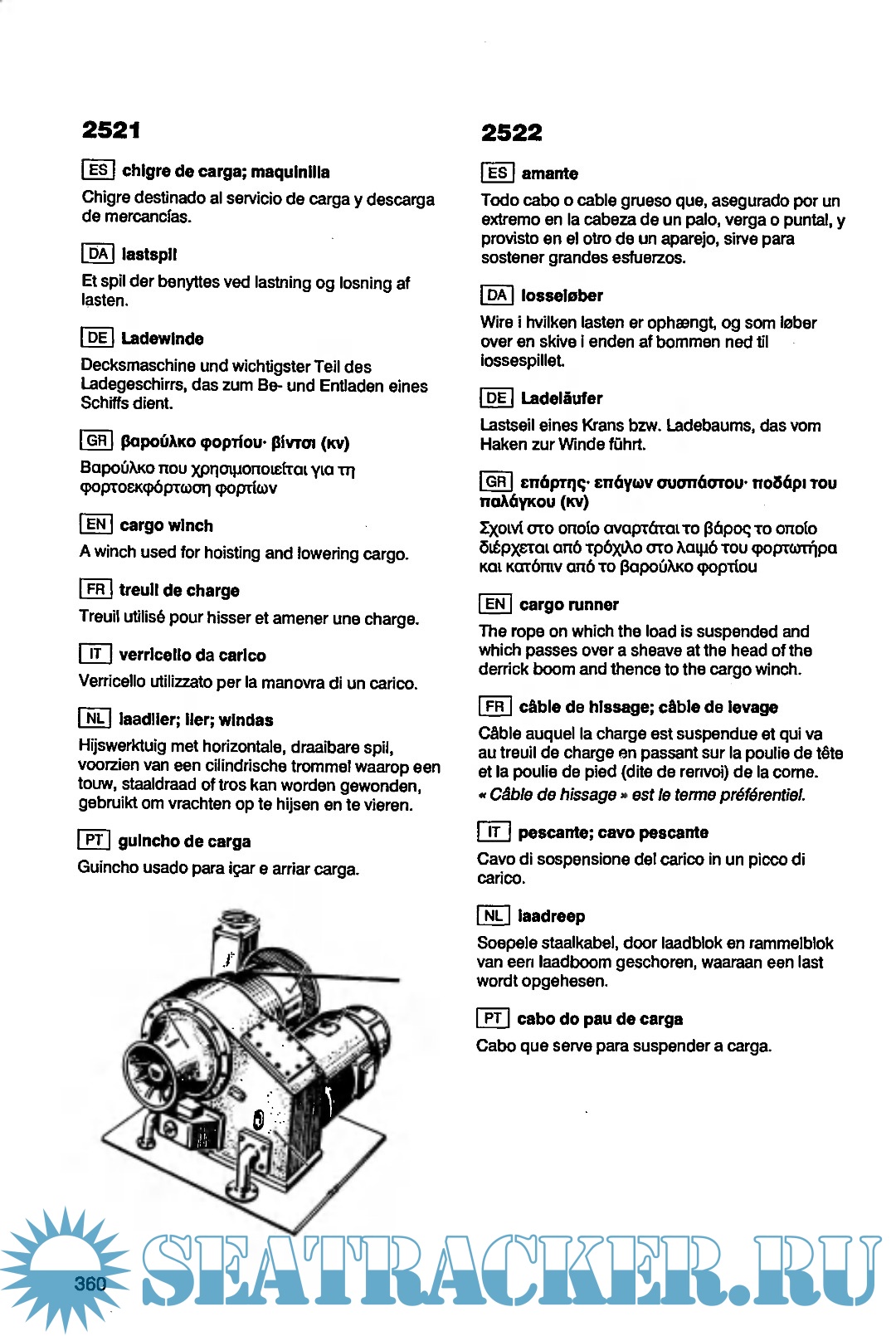 Year: 1993 Language: English, Danish, Dutch, French, German, Greek, Italian, Portuguese, Spanish Author: Commission of the European Communities Publisher: Blackwell Pub Edition: 2 ISBN: 0-85238-191-3, 92-825-9786-5 199 Format: PDF Quality: Scanned pages + text layer Pages count: 986 Description: Probably the most comprehensive dictionary of fishing vessel terminology ever written, this unique reference book for the fishing industry defines 1086 terms in nine languages - English, French, German, Italian, Spanish, Portugese, Danish, Greek and Dutch - accompanied wherever possible with appropriate illustrations. The number of entries has been doubled in this second edition. In addition to dealing with the many different types of fishing vessels, safety is dealt with in detail, including vessel parts and structures, installations on board, stability requirements, signals and life-saving equipment. Since fishing terminology is highly specialised and very difficult to find elsewhere a team of prominent international experts has been involved in compiling the work in order to guarantee maximum reliability.