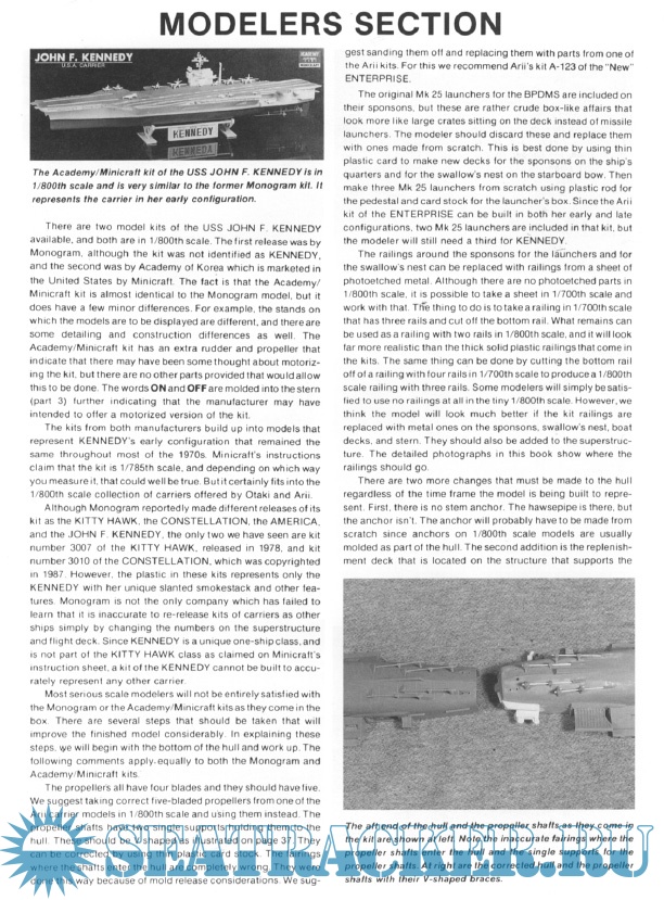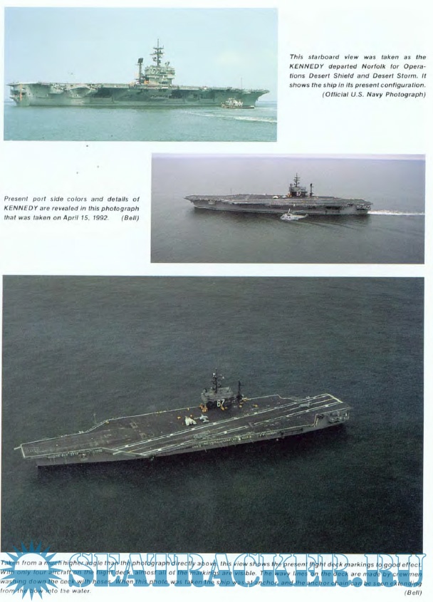Year: 1993 Language: English Author: Bert Kinzey Genre: Historical Publisher: Kalmbach Publishing Co. Edition: D&S Vol. 42 Format: PDF Quality: Scanned pages Pages count: 76 Description: This is the forty-second title in the Detail & Scale Series of aviation publications and the fifth about one of the aircraft carriers m the US Navy Previously we have done books on the USS LEXINGTON. USS AMERICA. USS FORRESTAL. and the nuclear powered USS ENTERPRISE Each of these carriers was in a different class, and now we turn our attention to the USS JOHN F KENNEDY. CV-67, which belongs to yet another unique one-ship class As the last conventionally powered aircraft carrier built for the U S Navy. KENNEDY shares design features with the KITTY HAWK class which came before her. and the nuclear powered NIMITZ class which came later All of these features are covered with detailed photography on the pages that follow.