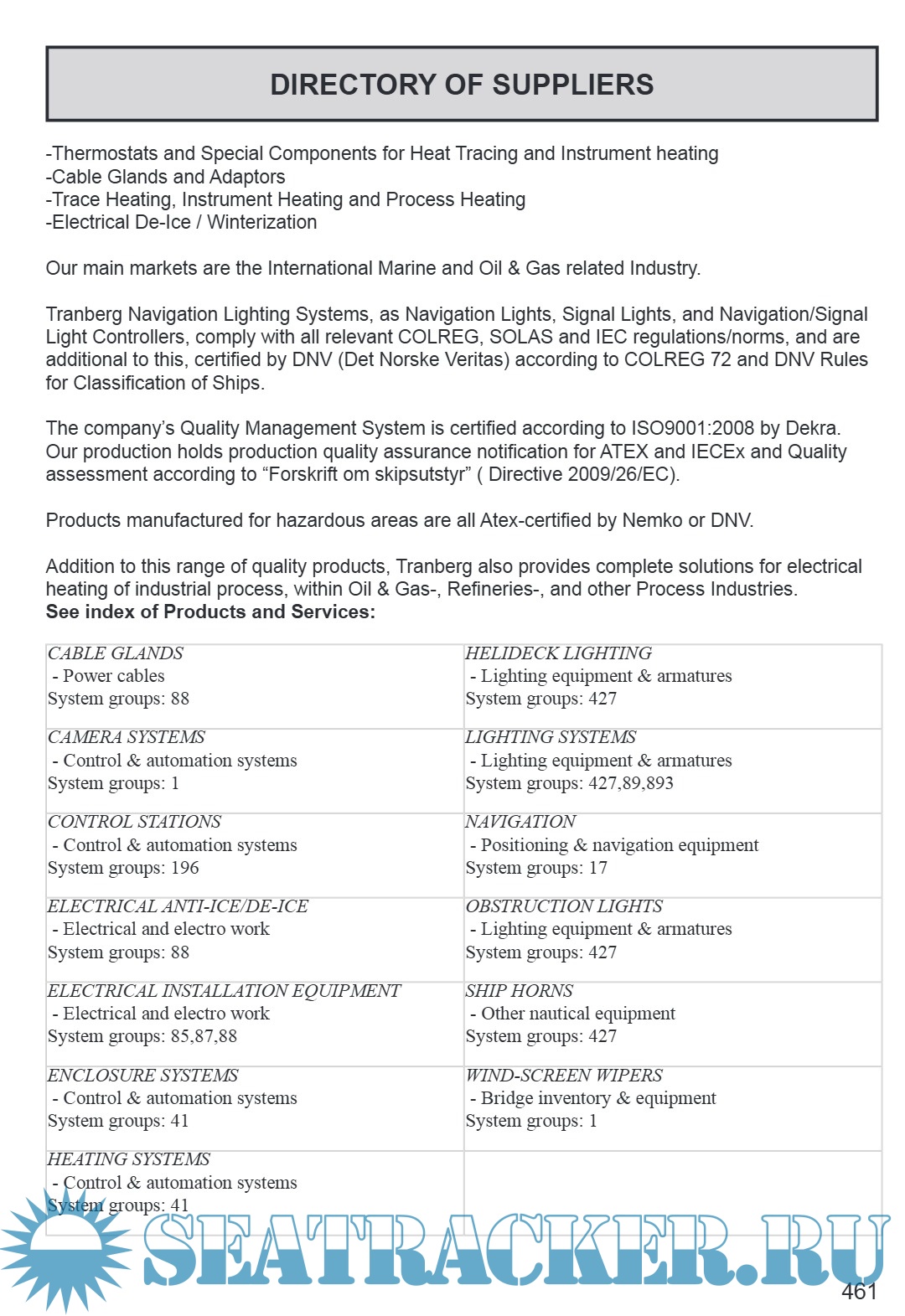 Year: 2016 Language: English Author: www.maritime-suppliers.com Genre: Catalog Format: PDF Quality: eBook Pages count: 568 Description: We hereby have the pleasure of introducing the 22th edition of ”Norwegian Maritime Equipment” The content of this publication is made on information given by the companies introduced in "Directory of Suppliers". Therefore, the publisher are not able to guarantee the accuracy of the information obtained in ”Norwegian Maritime Equipment” nor do they accept responsibility for errors or omissions or their consequences. However, all the information given is controlled and accepted by the companies listed. We would like to thank the many companies/individuals who have trusted us by giving us the information for this publication and which have made this production possible. IMI has, some years ago, carried out a major research project. The project was financially supported by the Norwegian Research Council as well as by organizations like the Federation of Norwegian Industries, Marine Div. and the Association of Norwegian Maritime Exporters. It aims at developing solutions enabling suppliers to provide product specifications that customers may import directly in their outline- or building specifications. The major consequence for our customers is the change in how products are classified. Historically, products have been connected to one group only. We experienced that products had to be duplicated in order to be located via a multiple product groups. In addition to that, product groups have represented a “mixture” of products, some of them being solely component based (i.e. “cranes”), whereas others have been system based (e.g. “deck machinery”), and others representing a combination (e.g. “deck cranes”). This resulted in a large number of product groups.