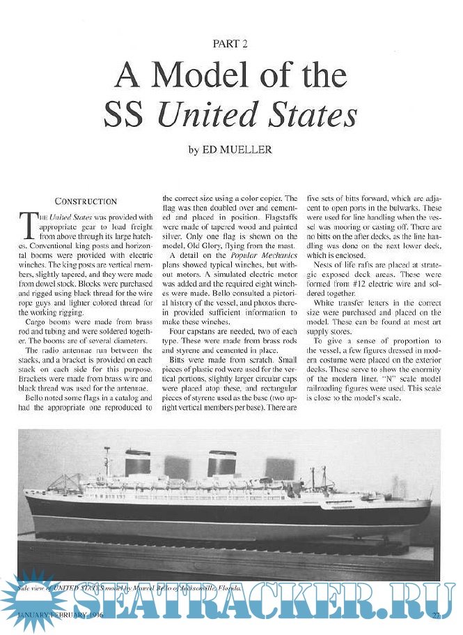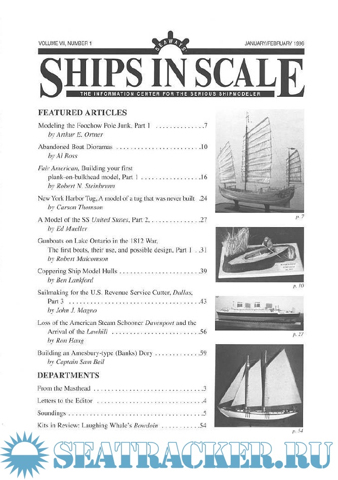 Year: 1996 Language: English Author: Scottie Dayton (Editor) Genre: Periodical publication Edition: 1996-1 Format: PDF Quality: eBook Pages count: 75 Description: Seaway is the home port for Seaways Ships in Scale magazine, the leading workshop and research magazine for the ship modeler. In the magazine we explore all levels of modeling experience, all types of ships, all kinds of models, all historical eras and all construction materials