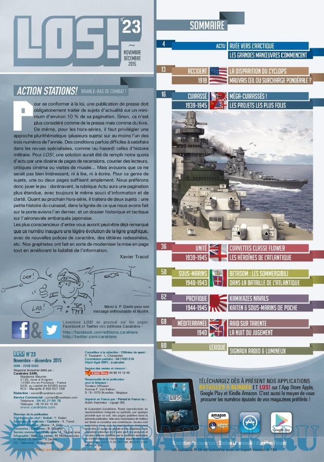 Description: LES ÉDITIONS CARAKTÈRE PRENNENT LE LARGE EN LANÇANT UN NOUVEAU MAGAZINE CONSACRÉ À LA GUERRE NAVALE !Les sujets passionnants ne manquent pas et LOS ! met un point d’honneur à les présenter au lecteur comme cela n’a jamais été fait dans la presse française jusqu’à présent. Un seul mot d’ordre pour l’équipe rédactionnelle : rigueur scientifique et présentation ludique !S’appuyant sur un fond photographique d’exception, sur des plans de bateaux et d’avions, les éditions Caraktère innovent une fois de plus en vous proposant aussi des vues 3D détaillées, le tout au service de textes soigneusement rédigés par des auteurs spécialisés. Vous comprendrez ainsi comment fonctionne un submersible, comment se déroule un combat naval, comment est conçu un cuirassé ou comment attaquent les avions-torpilleurs !Revivez au fil des pages l’aventure humaine exceptionnelle des matelots de la marine marchande affrontant les U-Boote en Arctique, ou celle des pilotes embarqués sur les porte-avions américains et japonais. Lisez les exploits des hommes-grenouilles italiens en Méditerranée, des équipages des vedettes lance-torpilles dans la Manche, des sous-marins soviétiques de la guerre froide ou des grands cuirassés de 1914-18