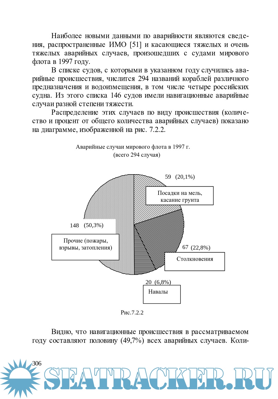 Год выпуска: 2002 Язык: Русский Автор: Груздев Н.М. Жанр: Учебное пособие Издательство: Высшие специальные офицерские классы Военно-морского флота Формат: PDF Качество: Изначально компьютерное (eBook) Количество страниц: 369 Описание: Введение. Обоснование способов оценки точности места и навигационной безопасности плавания. Точностные факторы навигационной безопасности плавания и их оценка. Навигационная безопасность плавания и ее показатель. Погрешности навигационных величин и способы их оценки. Погрешности места корабля и их вероятностная оценка. Оценка точности обсервации, полученной по двум навигационным изолиниям (линиям положения). Оценка точности вероятнейшего места, полученного по трем и более навигационным изолиниям. Погрешность счислимого места и вероятностная оценка точности счисления. Оценка погрешности места корабля по заданному направлению. Количественная оценка навигационной безопасности плавания. Вероятностная модель априорной интегрированной оценки навигационной безопасности плавания. Оценка вероятности безопасного положения корабля в узкости. Оценка вероятности безопасного положения корабля в прибрежной зоне и в открытом море. Оценка безопасности расхождения кораблей. Маневр расхождения для предупреждения столкновения. Оценка безопасности корабля на фарватере при нахождении на нем встречного корабля. Оценка вероятности случайного выхода корабля на встречную полосу движения. Статистический (апостериорный) способ оценки навигационных происшествий. Параметры навигационной безопасности плавания и их допустимые значения. Параметры навигационной безопасности плавания. Допустимые погрешности в месте корабля. Допустимое сближение с навигационной опасностью. Допустимая скорость корабля. Допустимые глубина моря и глубина погружения подводной лодки. Допустимые углы сноса при плавании по узким фарватерам. Допустимые интервалы времени между последовательными обсервациями и между определениями течений. Сводная таблица допустимых параметров навигационной безопасности плавания. Статистические способы контроля надежности навигационной информации и выявления промахов. Задачи и сущность статистического контроля надежности навигационных данных. Контроль и выявление промахов при решении задач обеспечения навигационной безопасности плавания. Контроль надежности работы навигационных систем. Вероятность появления экстремальных погрешностей. Практические приемы и способы обеспечения и контроля навигационной безопасности плавания. Предварительная оценка навигационной безопасности плавания по заданному маршруту. Содержание планирования похода и подготовки к безаварийному плаванию. Методика расчета допустимой и ожидаемой точности плавания для обеспечения навигационной безопасности. Оценка вероятности безопасного плавания по заданному маршруту. Выбор безопасного маршрута движения. Организация, средства и методы обеспечения и контроля навигационной безопасности плавания. Организация штурманской службы корабля при обеспечении и контроле навигационной безопасности плавания. Содержание деятельности штурманской службы по обеспечению и контролю навигационной безопасности плавания. Способы и средства контроля навигационной безопасности плавания в открытом море и при подходе к 