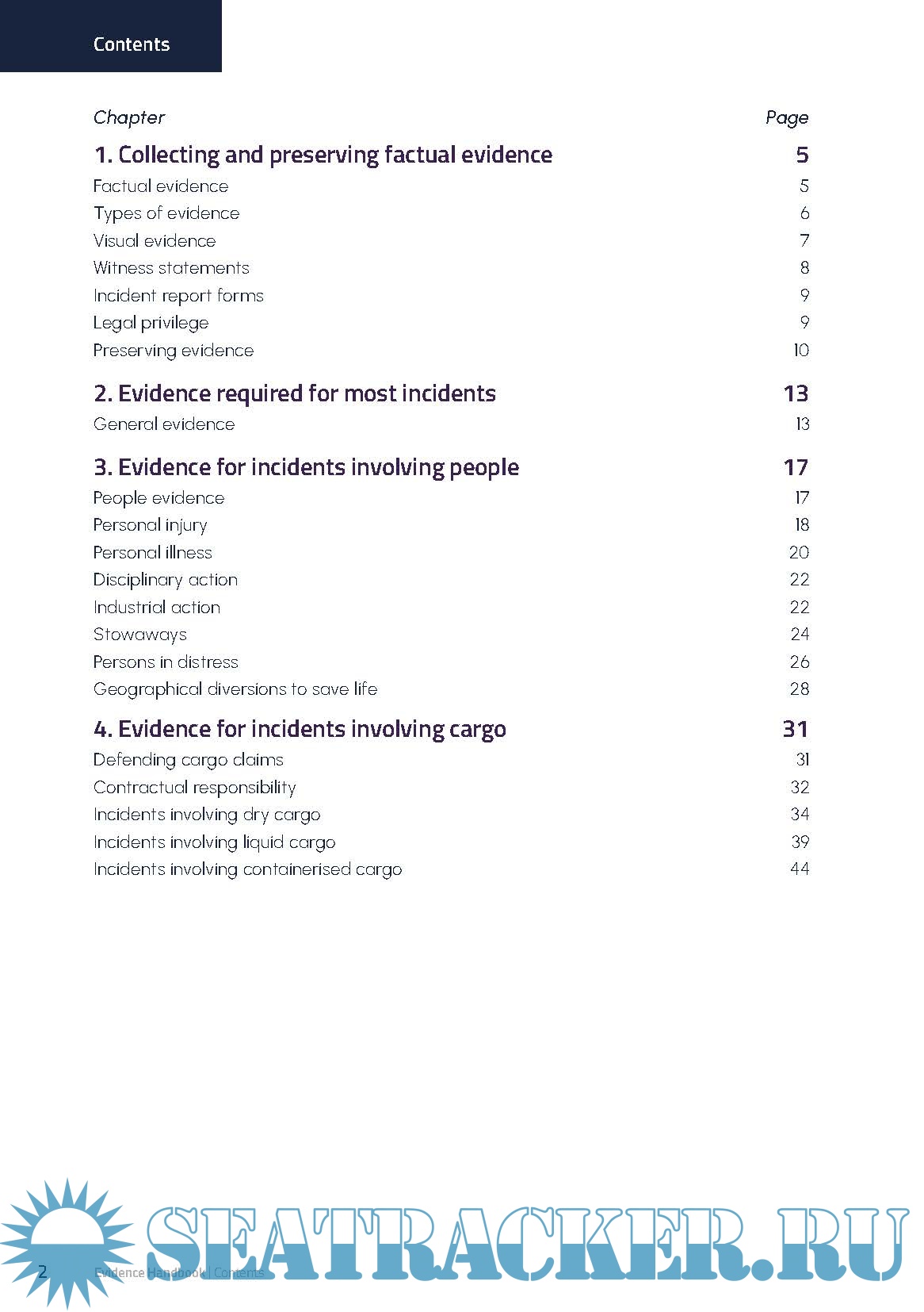 This publication equips readers with the knowledge necessary to demonstrate a ship’s compliance, improve shipboard operations and determine liability when pursuing or defending a claim. Evidence checklists cover areas such as personal illness and performance warranty disputes, meaning crew are prepared for various eventualities. Detail is given on digital evidence types, explaining the practical use of electronic devices such as ECDIS and mobile phones. The publication guides readers on good reporting practice and time management, so that all evidence can be handled sensitively and without delay.