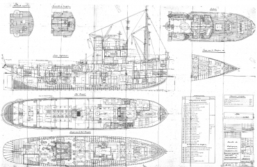 Описание: 44 листа архивных чертежей французского буксира PACHYDERME 1951 год