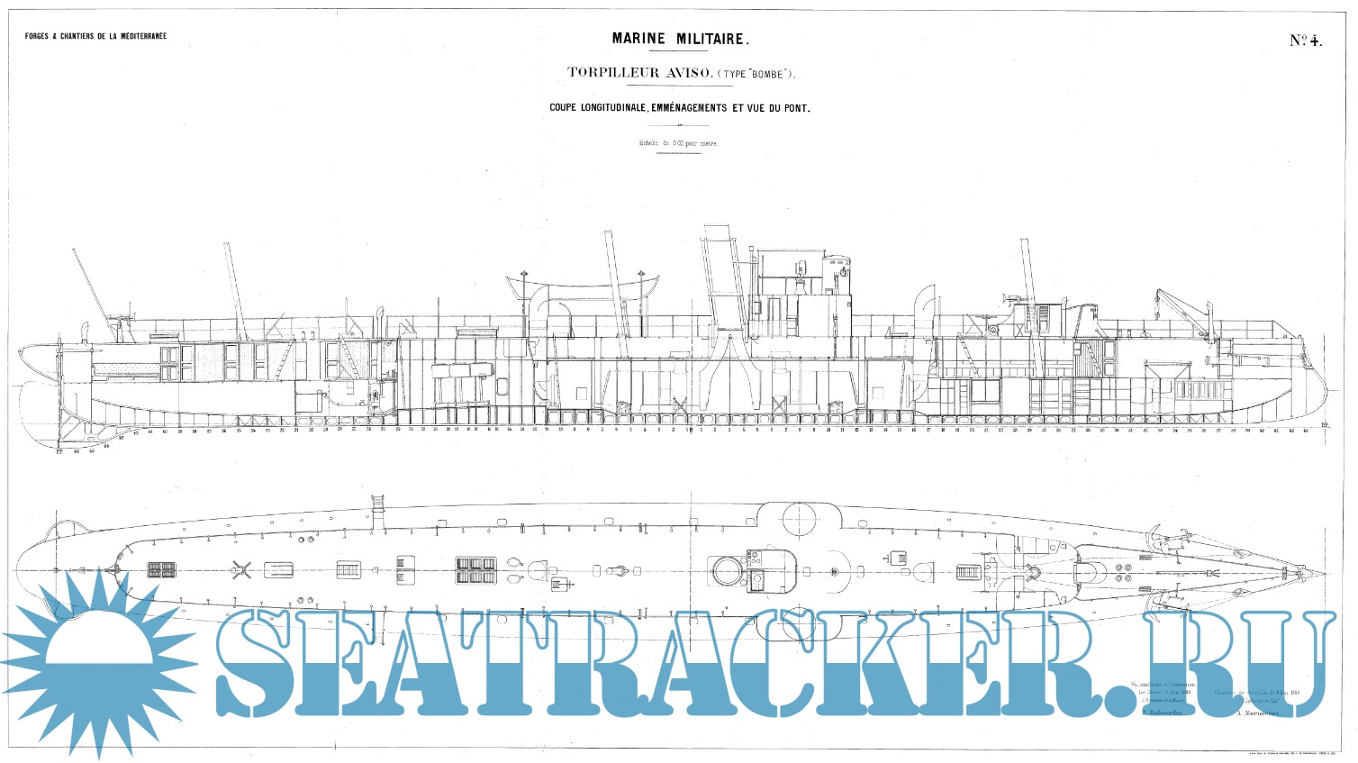 14 листов архивных чертежей французского миноносца LANCE 1886 годСкриншоты