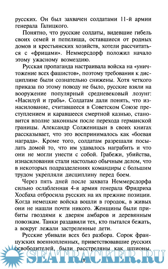 Год выпуска: 2005 Язык: Русский Автор: Добсон Кристофер, Миллер Джон, Пейн Роберт Жанр: Историческое Издательство: Нева Издание: Секретные материалы Формат: PDF Качество: Изначально компьютерное (eBook) Количество страниц: 292 Описание: Благодаря группе английских авторов подробности потопления лайнера "Вильгельм Густлоф", считавшегося символом Третьего Рейха, становятся общеизвестными. Эта книга - не сухое изложение документальных фактов, а захватывающий рассказ о судьбе людей, ставших жертвами ужасной морской катастрофы. Кристофер Добсон, Джон Миллер и Роберт Пейн впервые воссоздают полную и объективную картину страшных событий 30 января 1945 года. Отчаянное положение, в котором оказались люди, споры среди немецкого командования о распределении полномочий и трагические случайности привели к беспрецедентной мученической гибели тысяч беженцев из Восточной Пруссии. Книга содержит неизвестные ранее подробности о последнем выходе в море "Вильгельма Густлофа", интервью с пережившими катастрофу свидетелями и теми, кто нес ответственность за этот рейс.
