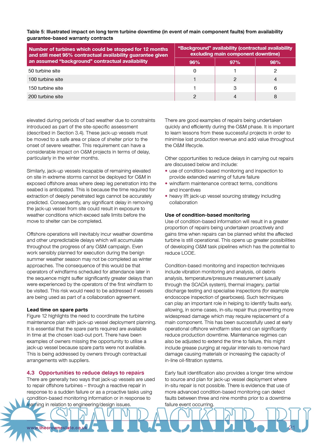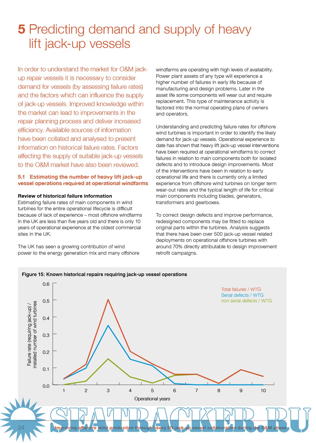 Year: 2014 Language: English Author: The Crown Estate Genre: Report Publisher: The Crown Estate Format: PDF Quality: eBook Pages count: 42 Description: This study has been commissioned by The Crown Estate and addresses the use of jack-up vessels in the operations and maintenance (O&M) phase of UK offshore windfarms. It presents experience of the use of jack-up vessels at operational offshore windfarms and considers the potential to improve windfarm performance through better use of jack-up vessels. The report reviews the role that increased collaboration between windfarm owners could play in reducing the Levelised Cost of Energy (LCOE) and puts this in context with other potential improvements. The study focuses on the UK offshore wind portfolio but considers vessel availability and demand in the European context and beyond.
