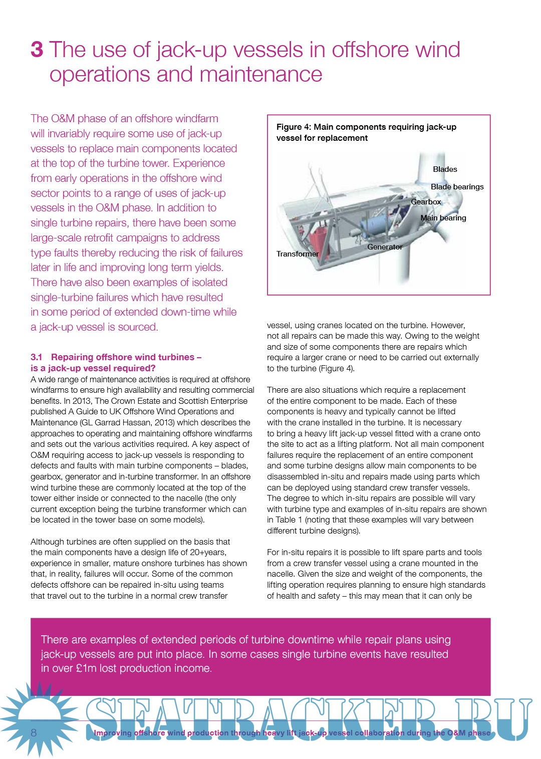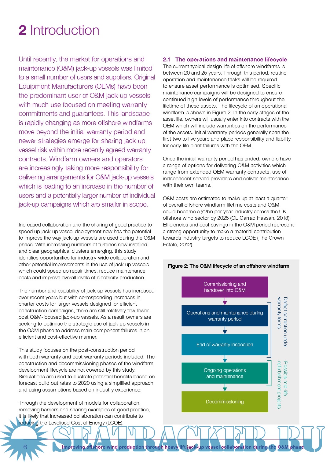 Description: This study has been commissioned by The Crown Estate and addresses the use of jack-up vessels in the operations and maintenance (O&M) phase of UK offshore windfarms. It presents experience of the use of jack-up vessels at operational offshore windfarms and considers the potential to improve windfarm performance through better use of jack-up vessels. The report reviews the role that increased collaboration between windfarm owners could play in reducing the Levelised Cost of Energy (LCOE) and puts this in context with other potential improvements. The study focuses on the UK offshore wind portfolio but considers vessel availability and demand in the European context and beyond.