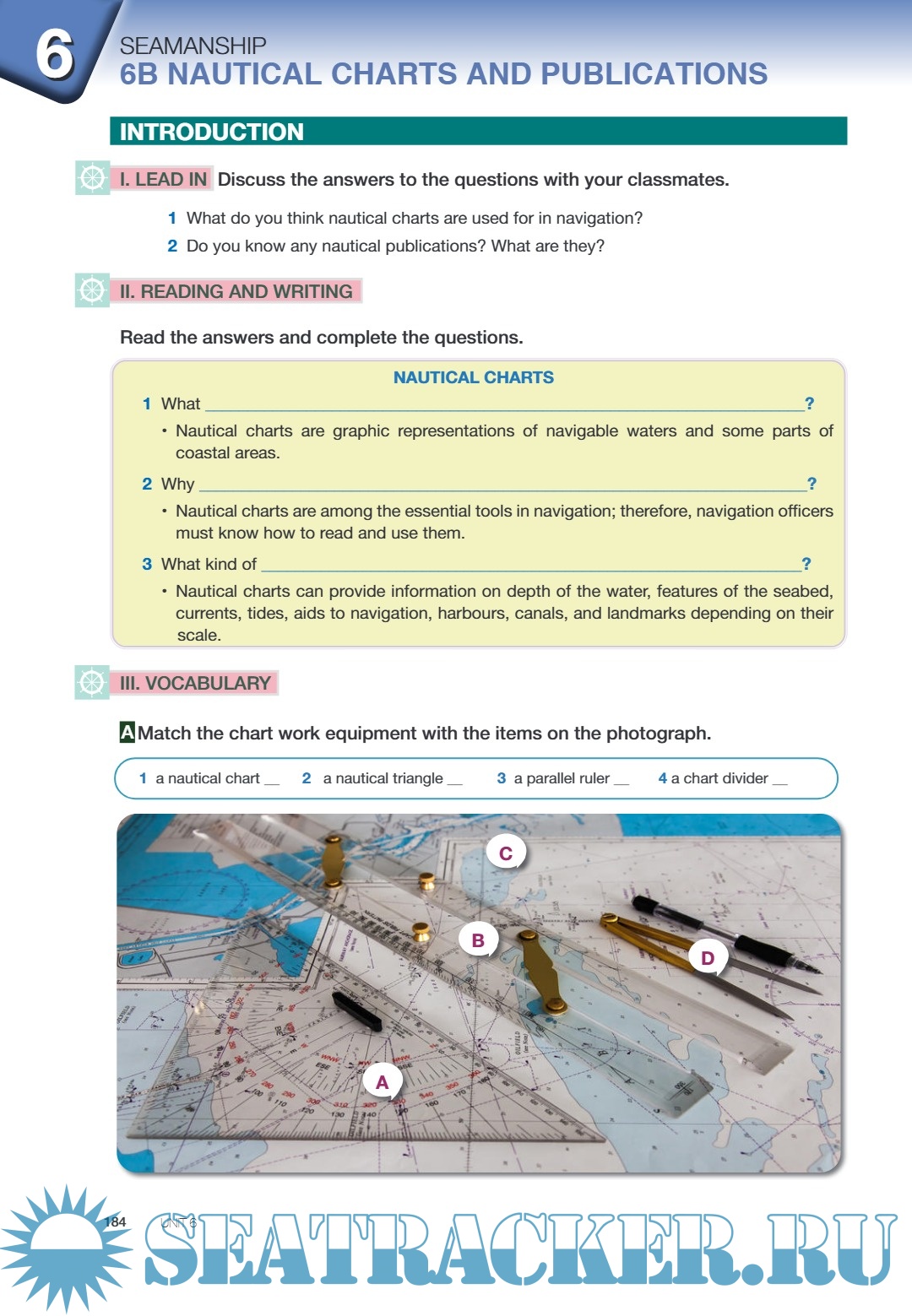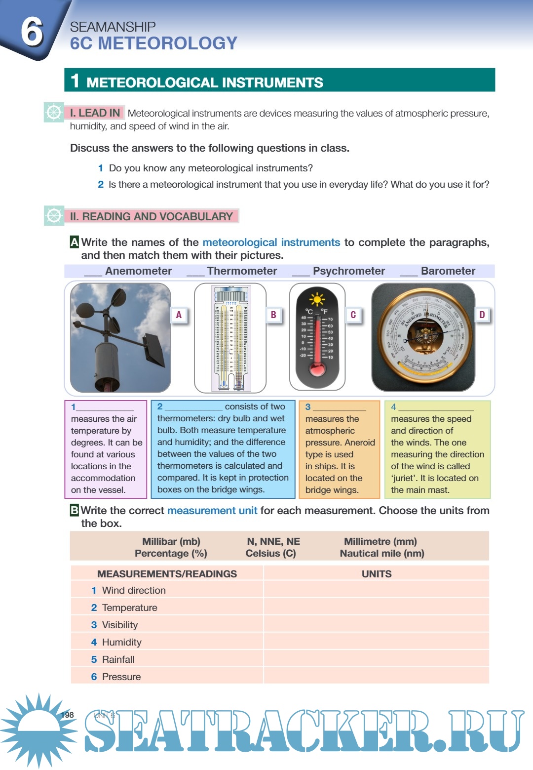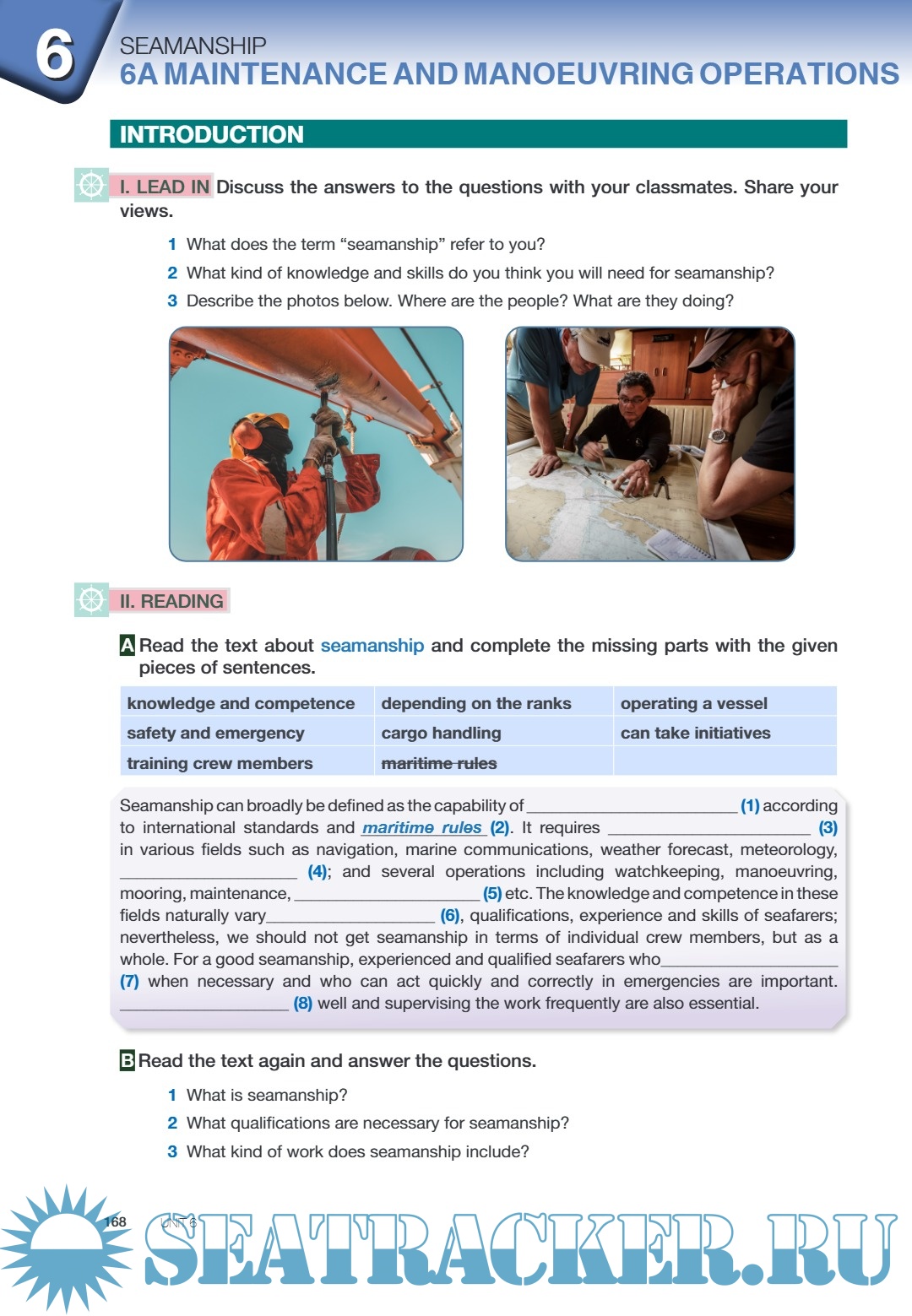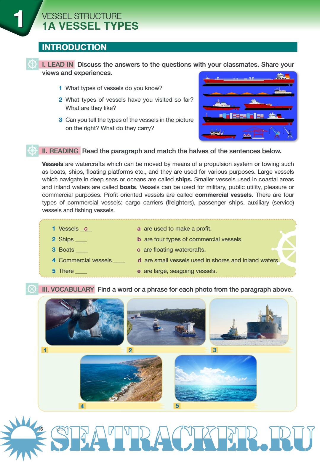 Year: 2020 Language: English Author: A. Kaplan Misirlioglu, C. Kelesoglu Genre: English Course for Students ISBN: - Format: PDF Quality: eBook Pages count: 267 Description: Prepared as a course material by the Directorate General of Vocational and Technical Education with the approval of the Ministry of National Education. Each part has an introduction to get you familiar with the basic terms, and “Lead in” activities are aimed to prepare and warm you up to the subjects covered in that part. Vocabulary, reading, writing, speaking and language activities in each unit are designed for developing basic skills in foreign language. Group and pair activities are also placed to increase your participation. At the end of each part, a project is suggested to you. You can work in groups which we hope you can enjoy a team work. We aimed to get you in contact with the people in maritime sector and lead you in the real environments of maritime sector. Additionally, at the end of each unit there is a self assessment part that you can evaluate your progress; and a revision part that you can check your knowledge.