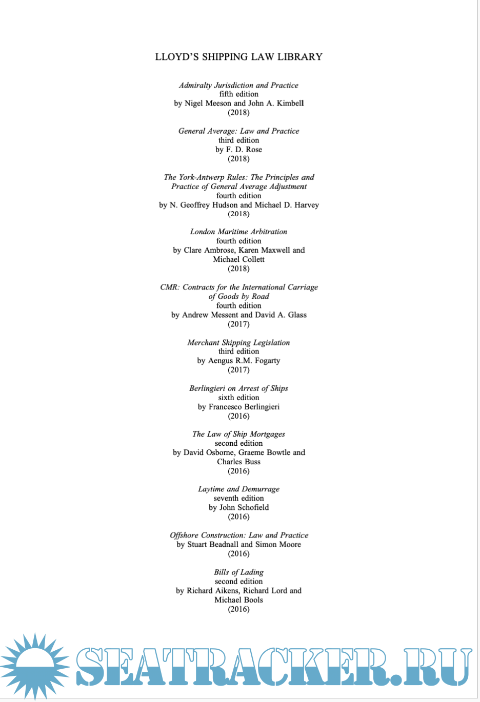 Year: 2018 Language: english Author: F D Rose Genre: Textbook Publisher: Informa Law Edition: 3rd ISBN: 978-1-138-06093-7 Format: PDF Quality: eBook Pages count: 462 Description: There are four main aims in writing the third edition of this book. The first is to provide a reasonably succinct account of the principles and rules of this specialist and, in practice, complex area of law, which has its place at the conjunction of the law of carriage of goods by sea, marine insurance and unjust enrichment. Its second aim is to combine an exposition of legal principles with a statement of the rules that are applied in practice. All law concerns real activities and a proper account of it must relate to what actually happens in practice, where theory and principle do not always fit easily with particular rules or policies. To some extent this should be easier with general average, where for over a century an attempt had been made to provide a consistent core of international principles and rules in the York-Antwerp Rules. However, the York-Antwerp Rules display both positive and negative aspects of the voluntary creation and application of standard terms. Last year, the 42nd international conference of the Comité Maritime International (CMI) in New York was inter alia the culmination of a long process to revise the Rules, particularly in the light of the unpopularity of the 2004 Rules as well as continuing changes in practice. The New York conference produced not only a new set of Rules but also, to accompany them, a not uncontroversial set of Guidelines, ostensibly for explanatory purposes, especially for those who are unfamiliar with the arcane world of general average. Inevitably, therefore, a third aim of this book is to examine and explain the York-Antwerp Rules 2016 along with a general update of the relevant law and practice.