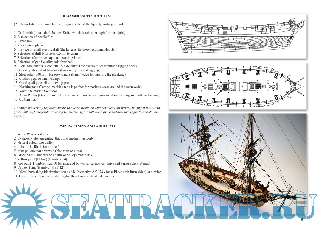 Year: 2023 Language: English Author: Watton C. Genre: Manual Publisher: VANGUAD MODELS ISBN: 978-0-7475-8545-9, 1-84415-301-0, 0-85177-971-9, 184832202X, 0851776175 Format: PDF Quality: eBook Pages count: 61 Description: The Speedy was ordered on 2nd June 1781 and built by Thomas King, a private shipyard owner based in Dover and launched on 29th June 1782. She moved to Deptford, Kent, to be fitted-out and have her hull covered with copper plates between 16 July and 25 October 1782. At her completion she had cost £4,200 7s 3d to build. She had a sister, Flirt, built at the same time in the same shipyard, but it was the Speedy that gained a reputation that far exceeded that of her diminutive size. The Flirt/Speedy class of brig-sloops were the second class built to the new flush decked brig-sloop designs, the first being the Childers class of 1779 (Childers was in the very first action that led to the long war with France from 1793-1815, after being fired upon on 2nd January 1793 from a French battery based in Brest, a cannon ball from the battery being taken to the Admiralty in London). Both the Childers and Speedy class were almost identical, and it would be difficult to tell the differences. Both were around the same dimensions, mast plans and armament and crew compliment. They also shared the same very graceful lines, more cutter-like than brig. These early flush decked brig-sloops had a graceful sheer and steeply raked stern, unlike the later Cruiser and Cherokee classes.