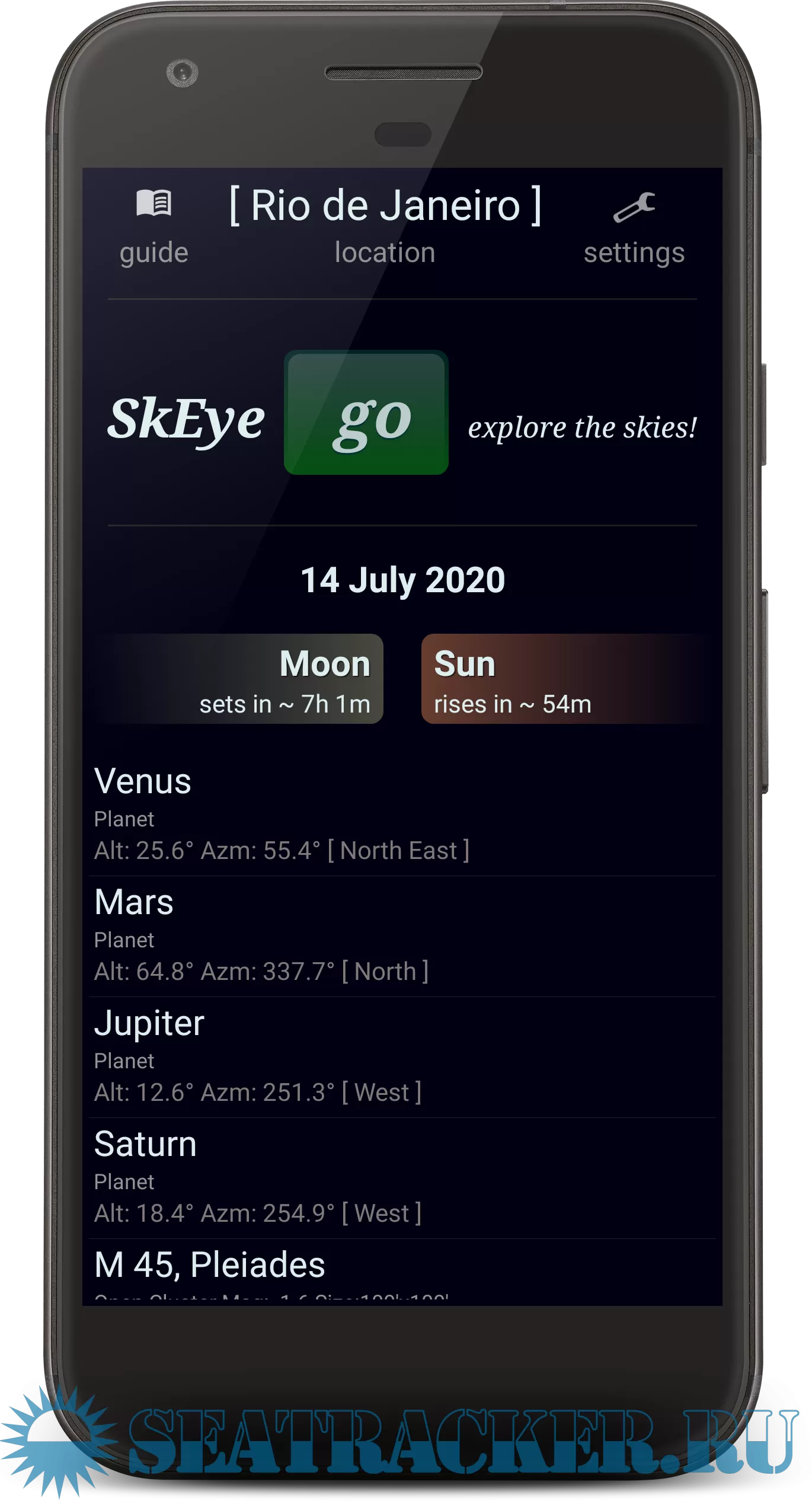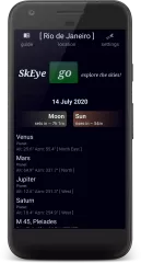 Year: 2024 Version: 9.2.1 Developer: Harshad RJ Platform: Android 64-bit OS compatibility: yes System Requirements: Android 7.1+ Localization: English Crack: Not needed Description: This is the Pro version of SkEye which supports: • Complete NGC, IC catalog with a powerful object filter • Custom Catalog, that can be imported from a CSV file • Support for Comets and Artificial Satellites. Note that TLE data is currently not automatically updated to avoid an extra permission: Internet access. Alternate mechanism is being designed. • All stars from Tycho2 catalog which goes up to mag 11.5. • Meteor showers, including Perseids, Geminids, Leonids