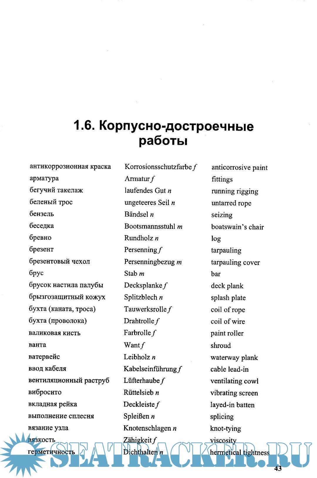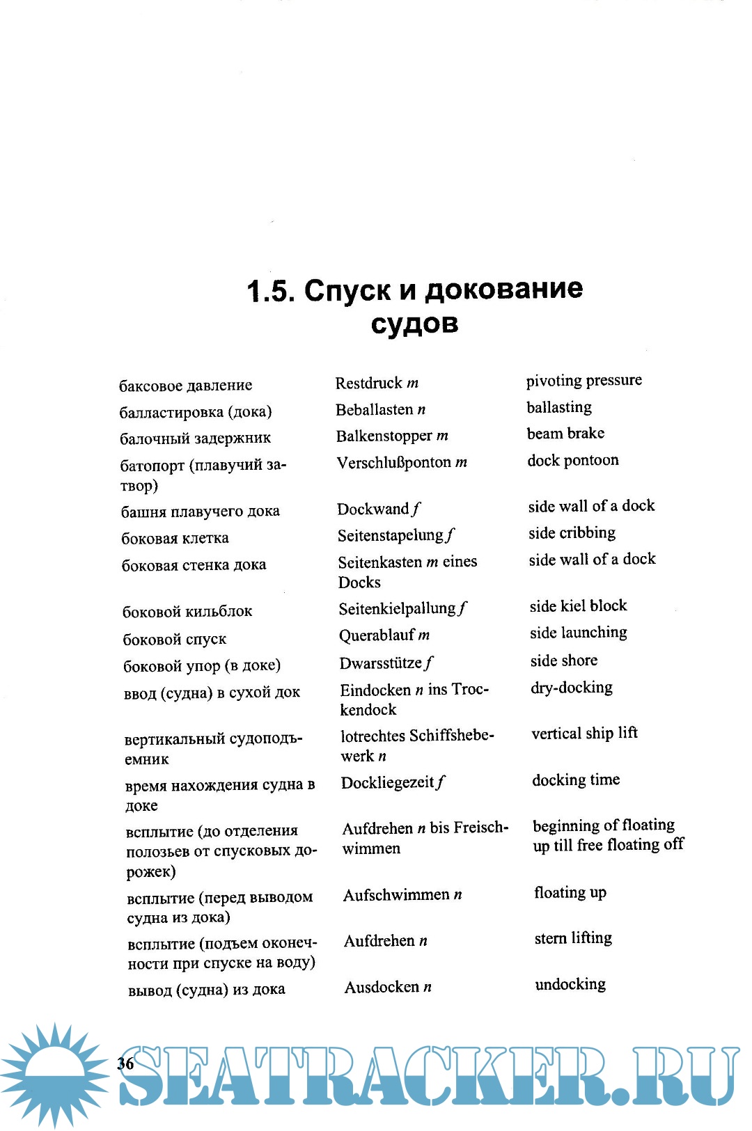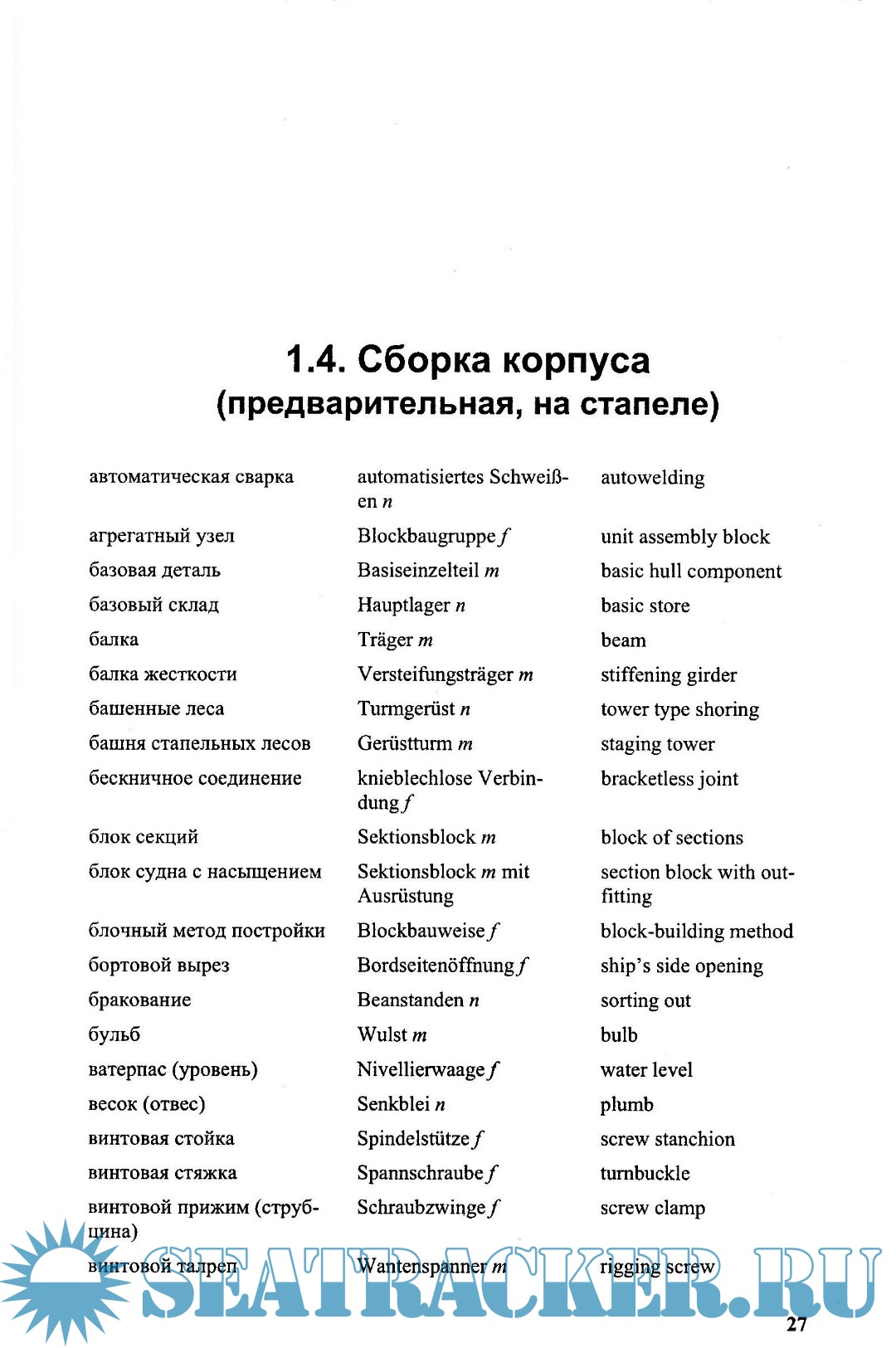 Description: The dictionary, which unites about 1600 terms used in shipyard practice, includes two main sections. The first of them is built according to the "Russian-English-German" placement scheme. Within it, the presented terms are grouped into nine special topics. The second section contains three combined dictionary blocks, within which the same terms are built according to the schemes: Russian-English-German, English-German-Russian and German-Russian-English dictionaries.