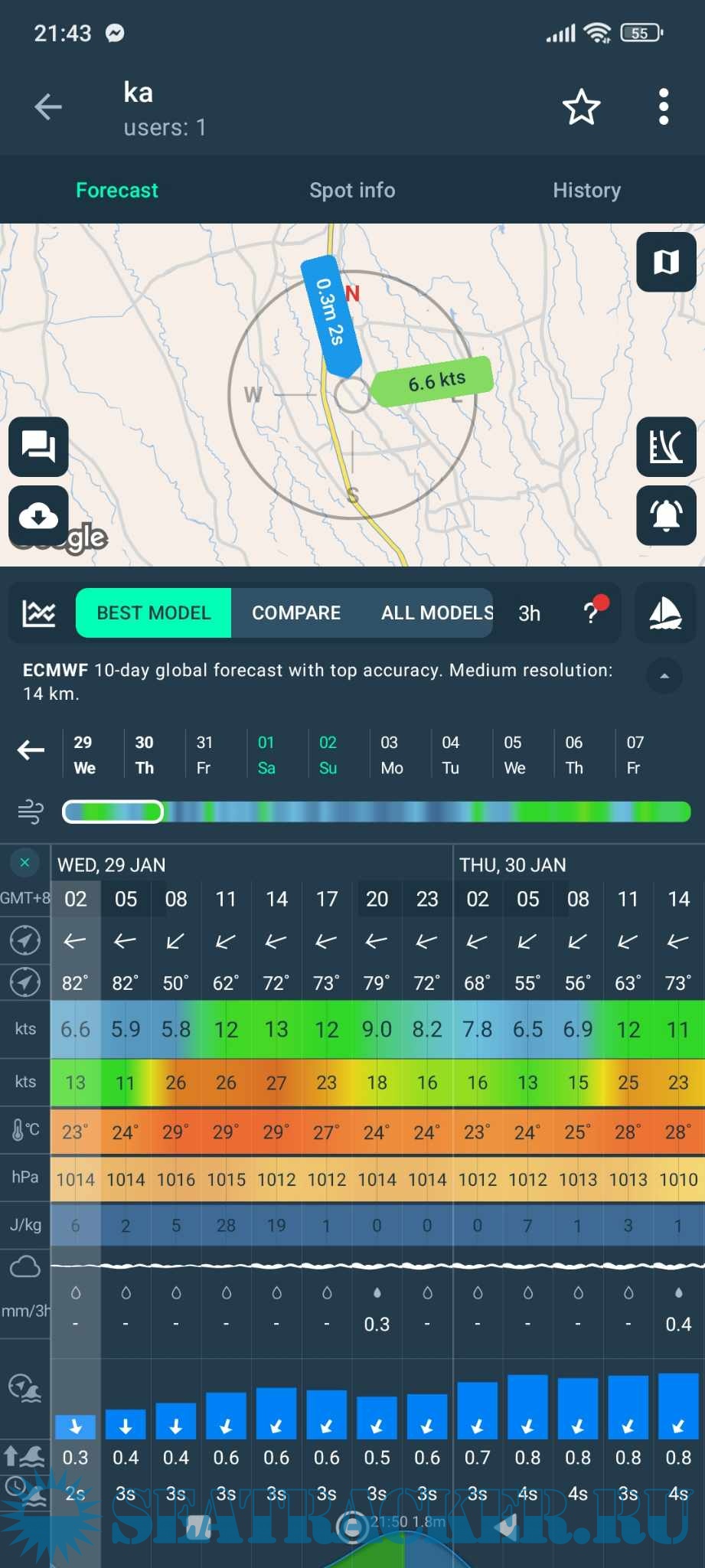 Weather forecasts are still the app’s signature feature. Users can choose the information they want to provide related to the weather, such as wind direction, temperature, regional forecast, low pressure, etc. The application provides a lot of information that fits your needs and facilitates your work process and planning.