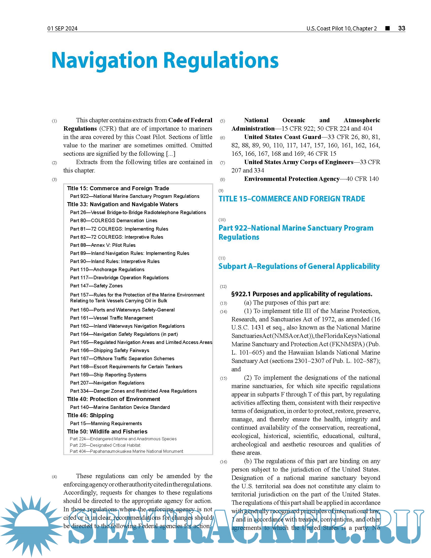 Topics in the Coast Pilot include channel descriptions, anchorages, bridge and cable clearances, currents, tide and water levels, prominent features, pilotage, towage, weather, ice conditions, wharf descriptions, dangers, routes, traffic separation schemes, small-craft facilities, and Federal regulations applicable to navigation.