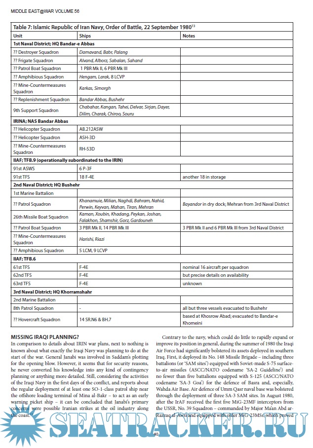 Description: The first part of this work is devoted to naval combat during the Iran-Iraq War, 1980-1988. It examines the state of the navies of these countries before the war, their plans of action, and the onset of hostilities.-Первая часть работы посвященной боевым действиям на море в ходе ирано-иракской войны, 1980-1988. В ней рассмотрены состояние флотов этих стран перед войной, планы действий и начало боевых действий.