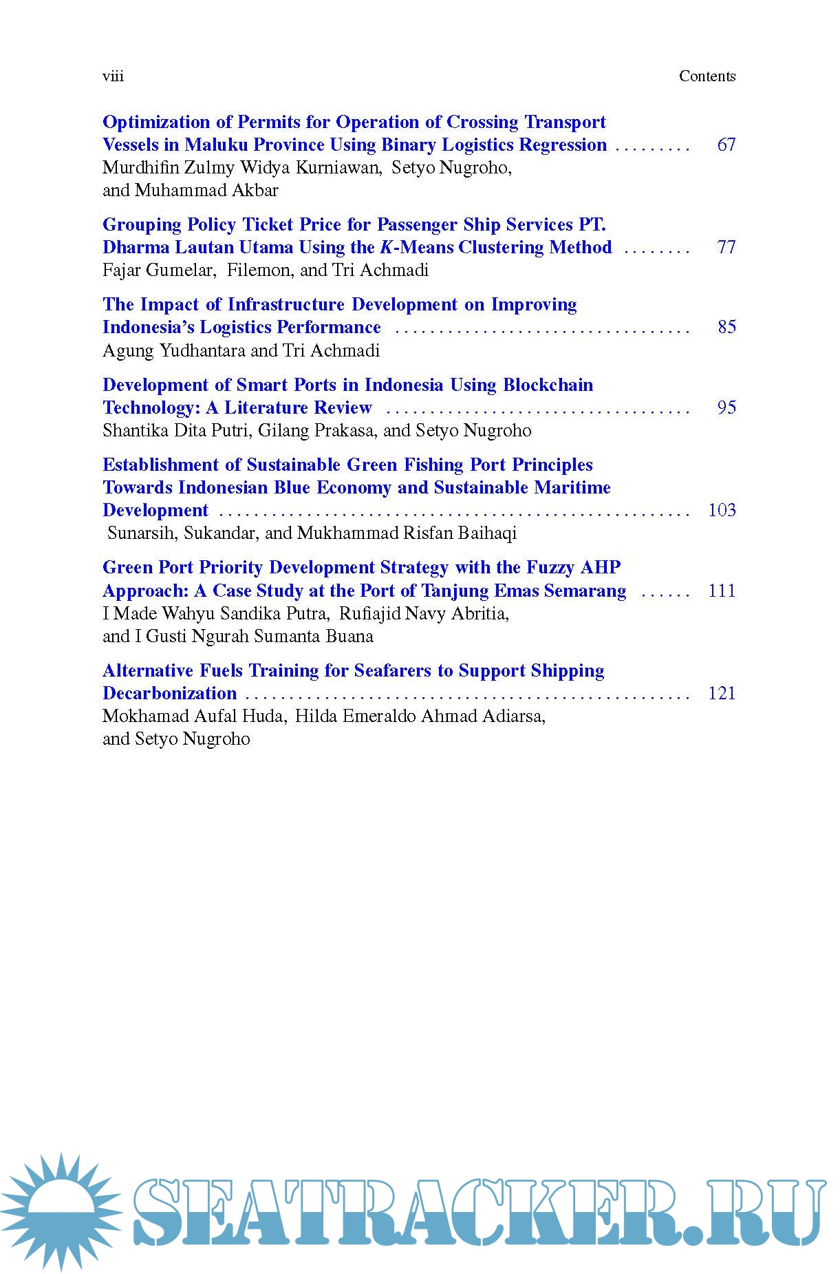 This book covers studies ranging from ship design and production technique comprising ship design process, ship hydrodynamics, ship structure and advanced ship material, and ship management and production technology. The book also examines the invention in marine operation, marine machinery and maintenance system, and marine safety including digital technology in marine system and safety. It also addresses the topics on coastal, ocean, and offshore technology starting from coastal/offshore hydrodynamics, ocean energy, mooring line analysis to offshore structure analysis. In addition, shipping, port, and marine logistic researches are also conveyed in this book especially on shipping operation optimization, port development, green port, and smart shipping development.