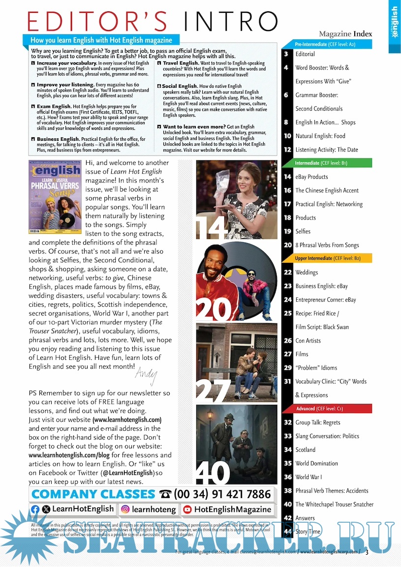 Year: 2026 Language: English Author: Andy Coney (Editor) Genre: Magazine Format: PDF Quality: Scanned pages Pages count: 46 Description: English for all levels (easy – advanced). A monthly magazine for learning English: readings (current topics, words explained) + listenings (lots of accents) + exercises + videos. Idioms, phrasal verbs, useful expressions, grammar, vocabulary. Learn faster because it’s fun! Great news! The latest issue of Hot English (285) is out now! This month: Learn 8 useful Phrasal Verbs from songs! Plus… Studying English for an exam, work, or fun? Then Hot English is number 1! By reading and listening to all this great content, you'll improve your English reading and listening skills and learn up to 1,000 useful words or expressions. Plus, you'll get a better job and pass English-language exams more easily. Guaranteed!