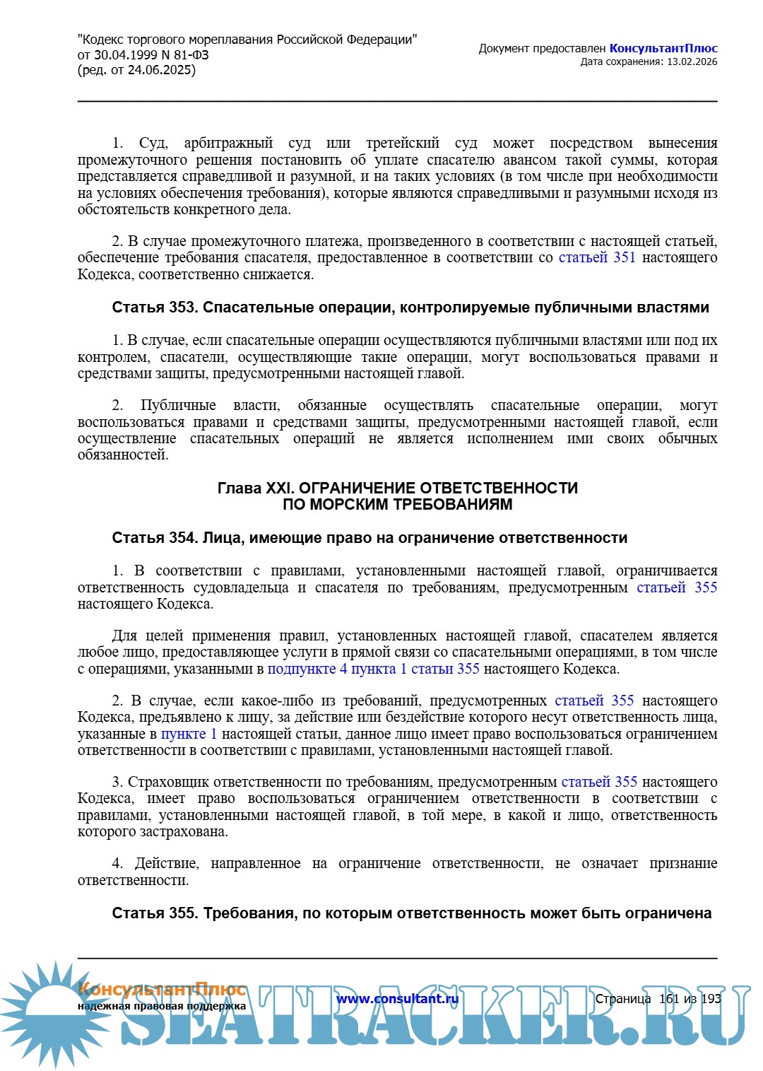 Кодекс торгового мореплавания Российской Федерации (ред. от 24.06.2025)