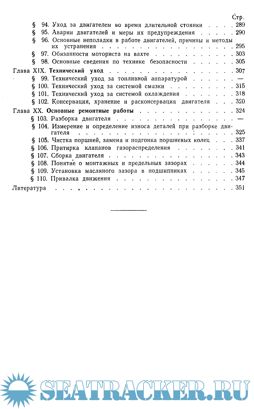 Большое внимание в книге уделено обслуживанию двигателей во время работы, уходу за ними и их регулировке; описана технология основных ремонтных работ.