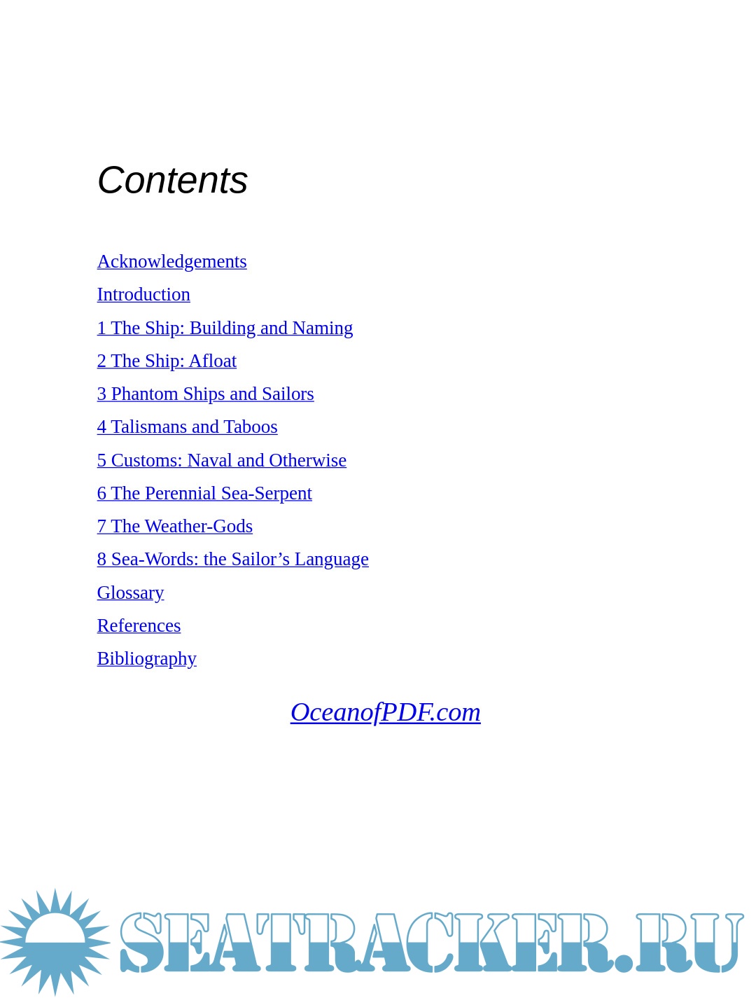 Year: 1979 Language: English Author: Baker M. Genre: History Format: PDF, ePUB Quality: eBook Pages count: 183 Description: The vivid, often eerie, superstitions, tales and rituals of the sea were the sailor’s response to danger – immediate and uncontrolled. As a sailing-ship beat for weeks across the Southern Ocean, domain of the albatross, meeting no one in the lonely wastes, her crew felt an urgent need to appease the sea-gods. Even today, with engines, iron or fibreglass hulls, and less credulous seamen, much traditional sea lore has survived, especially in the fishing fleets.Stories of phantom ships and crews (from the Flying Dutchman onwards), of the perennial sea-serpent, of lonely lighthouses; rituals such as the crossing-the-line ceremonies or blessing the fishing fleet; old weather lore, sailors’ chanties and sea language, taboos and talismans, precautions taken at keel-laying or launching – all these are recorded and interpreted here. For everyone who enjoys strange stories and the chilly fascination of the unconquered sea, or thrills to watch man pitting himself against merciless elements, this book is a delight and a mine of information. Margaret Baker is unrivalled at collecting traditions of the past and showing the part they have played for generations of men in their daily lives.