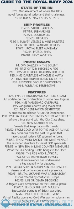 Description: Guide to the Royal Navy 2024The various components of what remains one of the world’s foremost navies are assessed, along with ship type profiles, naval aviation, amphibious warfare forces and much more, including aspects of naval heritage and other noteworthy developments