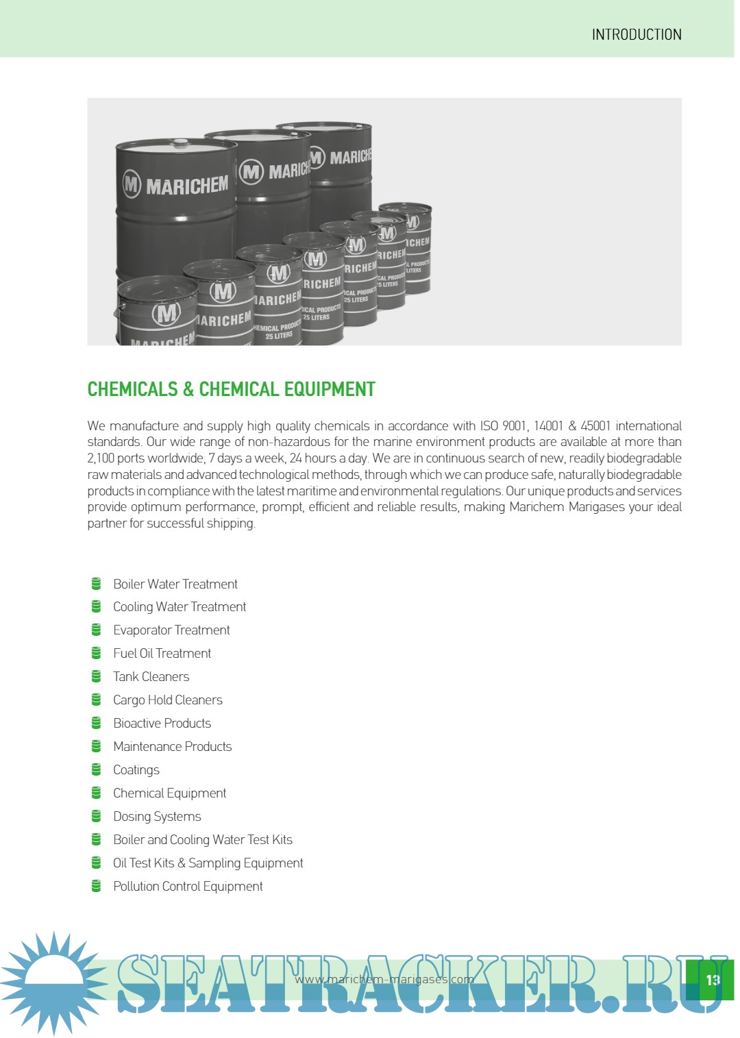 Additional info: Каталог Marichem Product Catalogue 2023 содержит полный ассортимент судовой химии и технических решений для обслуживания и эксплуатации морских судов. Включает средства водоподготовки, очистки, технического обслуживания и экологической безопасности, применяемые в современной морской индустрии.