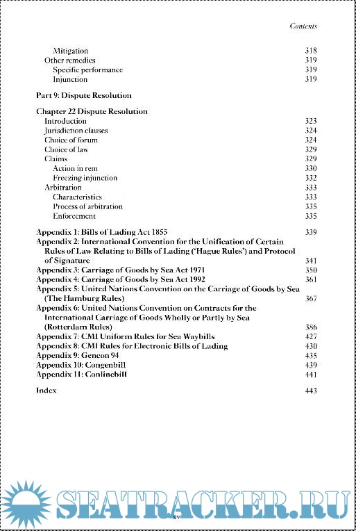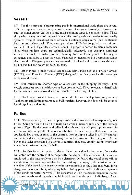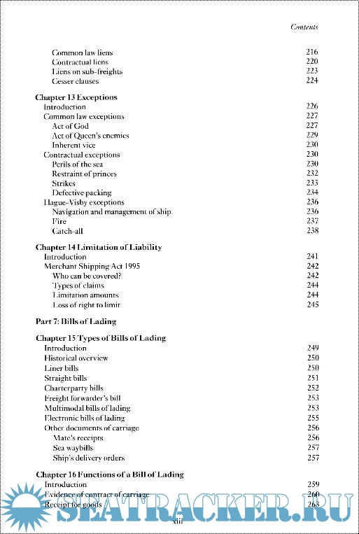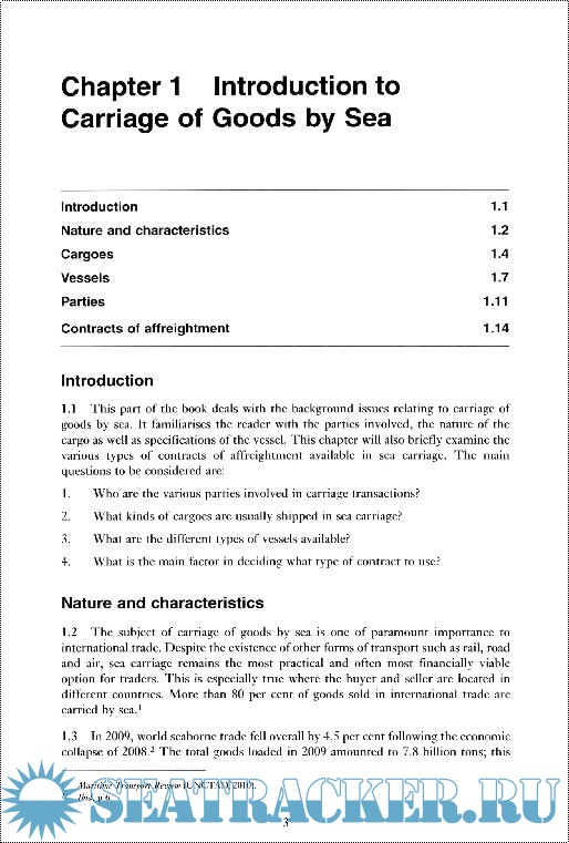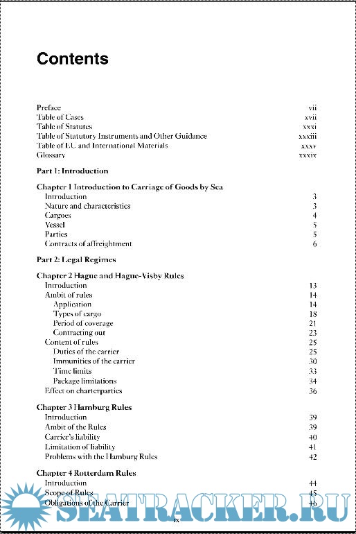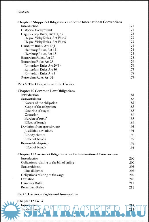 Year: 2011 Language: English Author: Singh, Lachmi Publisher: Bloomsbury Professional ISBN: 9781847667038 Format: PDF Quality: Scanned pages Pages count: 495 Description: This title provides a comprehensive overview and insight into the legal aspects of sea carriage and its surrounding issues. The book will enable students, both new to the subject, as well as those seeking to advance their knowledge, to better understand the often technical and complicated nature of the law in this area. Includes relevant case excerpts, statutory materials, exam and coursework related questions and diagrams to aid understanding of the subject. Material covered a general introduction; bills of lading; charterparties; international and domestic regulations; rights and obligations of the parties under a contract of carriage; limitations of liability; and remedies.