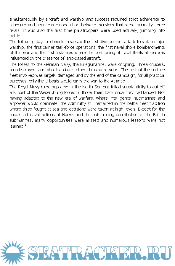 Year: 2010 Language: English Author: Geirr H. Haarr Genre: Historical Publisher: Naval Institute Press Format: ePUB Quality: eBook Pages count: 570 Description: This is the second book in a series of two, covering the events at sea during the German invasion of Norway in 1940, the first modern campaign in which sea, air and ground forces interacted decisively. Part one covers the events at sea off southern and western Norway where Norwegian and British forces attempted to halt the German advance out of the invasion ports as well as the stream of supplies and reinforcements across the Skagerrak. The second part focuses on the British landings in Central Norway where the Royal Navy for the fist time had its mastery challenged by air superiority from land-based aircraft.