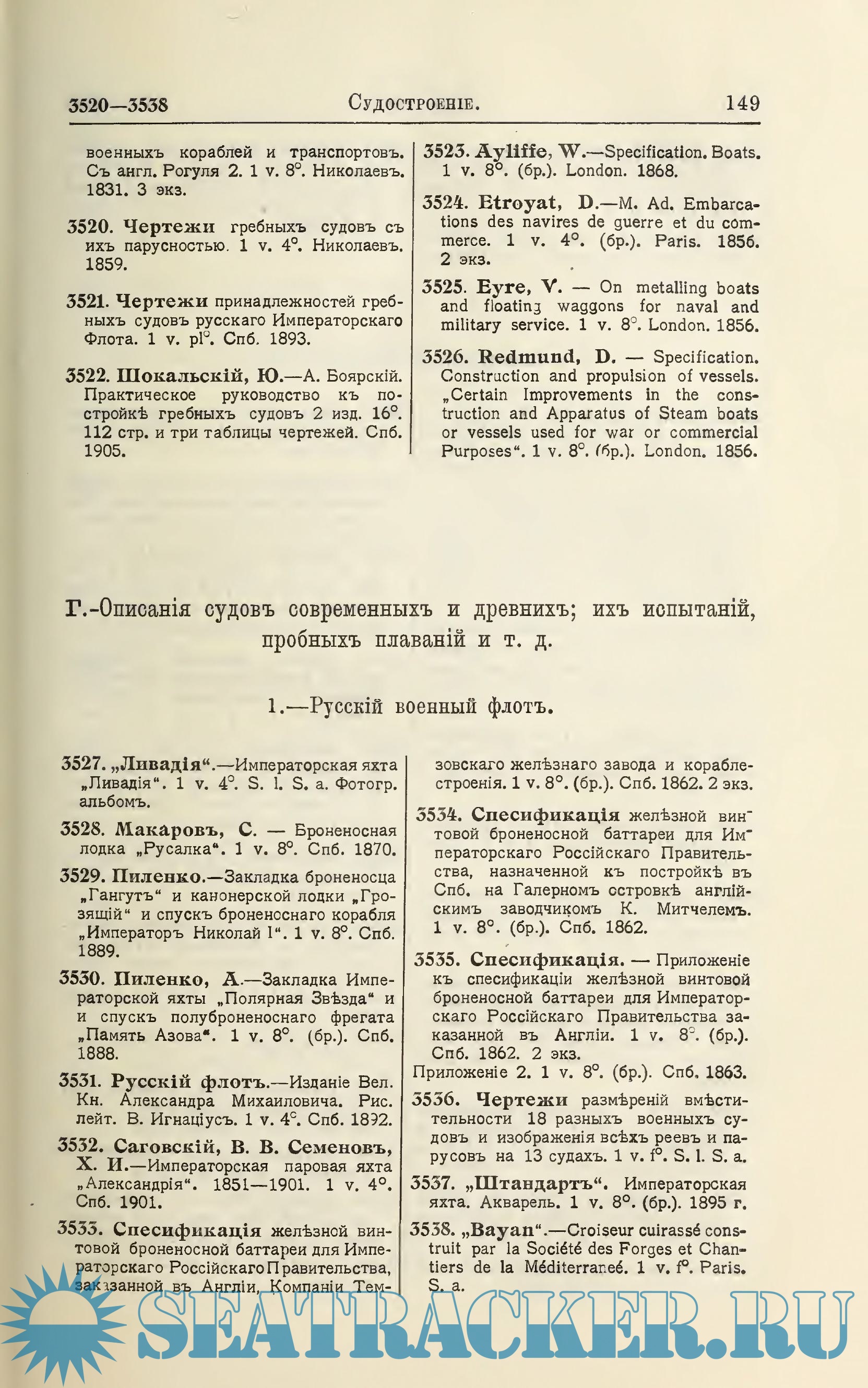 Описание: Систематический каталог библиотеки Морского министерства. Отделы Военно-морской и военный