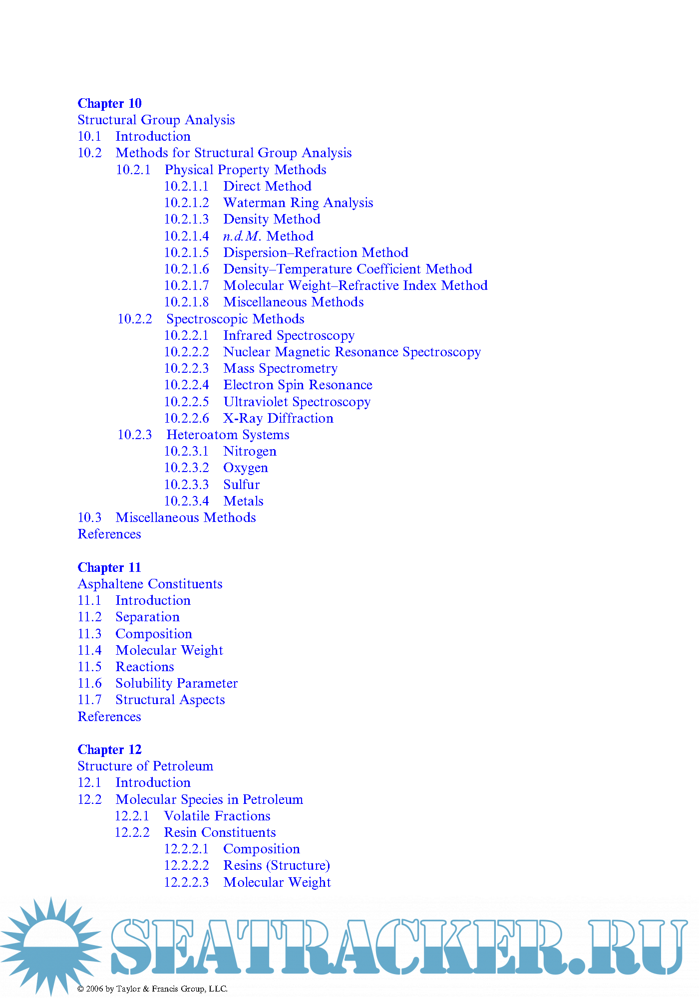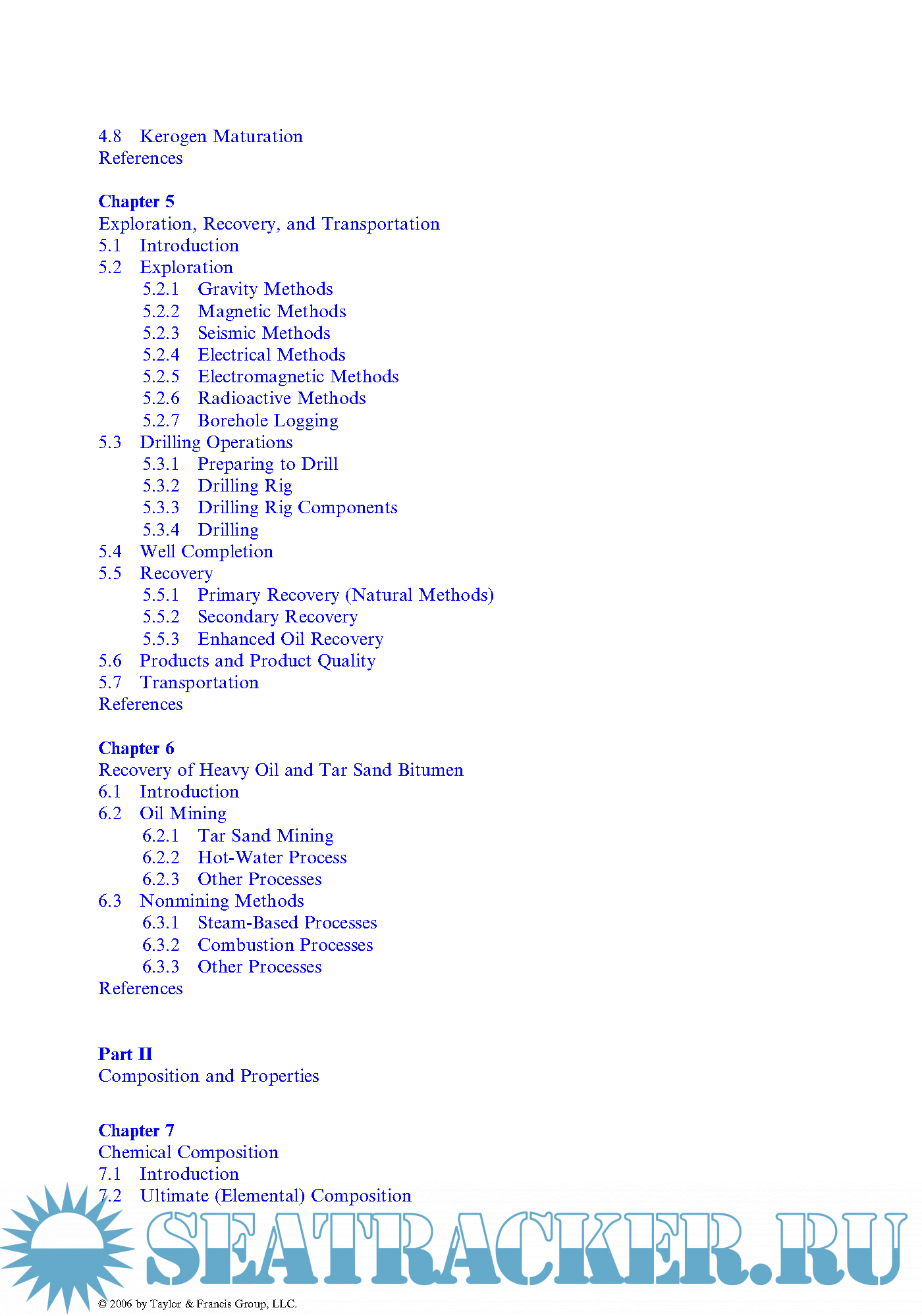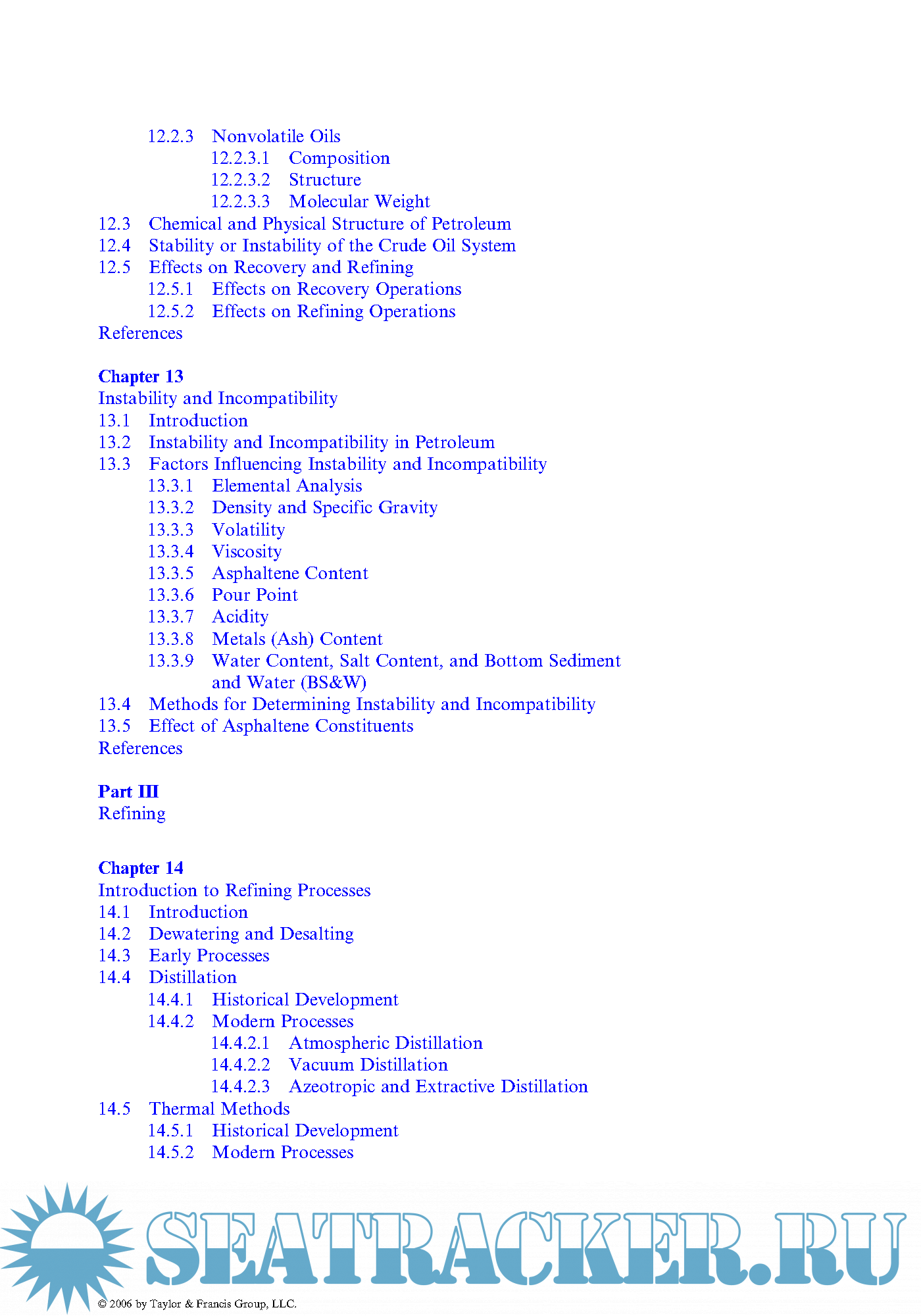 Year: 2006 Language: english Author: James G. Speight Genre: Technical book Edition: 4th Format: PDF Quality: eBook Pages count: 955 Description: It is the purpose of this book to provide the reader with a detailed overview of the chemistry and technology of petroleum as they evolve into the twenty-first century. With this in mind, many of the chapters that appeared in the third edition have been rewritten to include the latest developments in the refining industry. Updates on the evolving processes and new processes as well as various environmental regulations are presented. As part of this update, the chapters contain updates of the relevant processes that are used the industry evolves. The text still maintains its initial premise, to introduce the reader to the science of petroleum, beginning with its formation in the ground, eventually leading to the production of a wide variety of products and petrochemical intermediates. The text will also prove useful for those scientists and engineers already engaged in the petroleum industry as well as in the catalyst manufacturing industry who wish to gain a general overview or update of the science of petroleum.