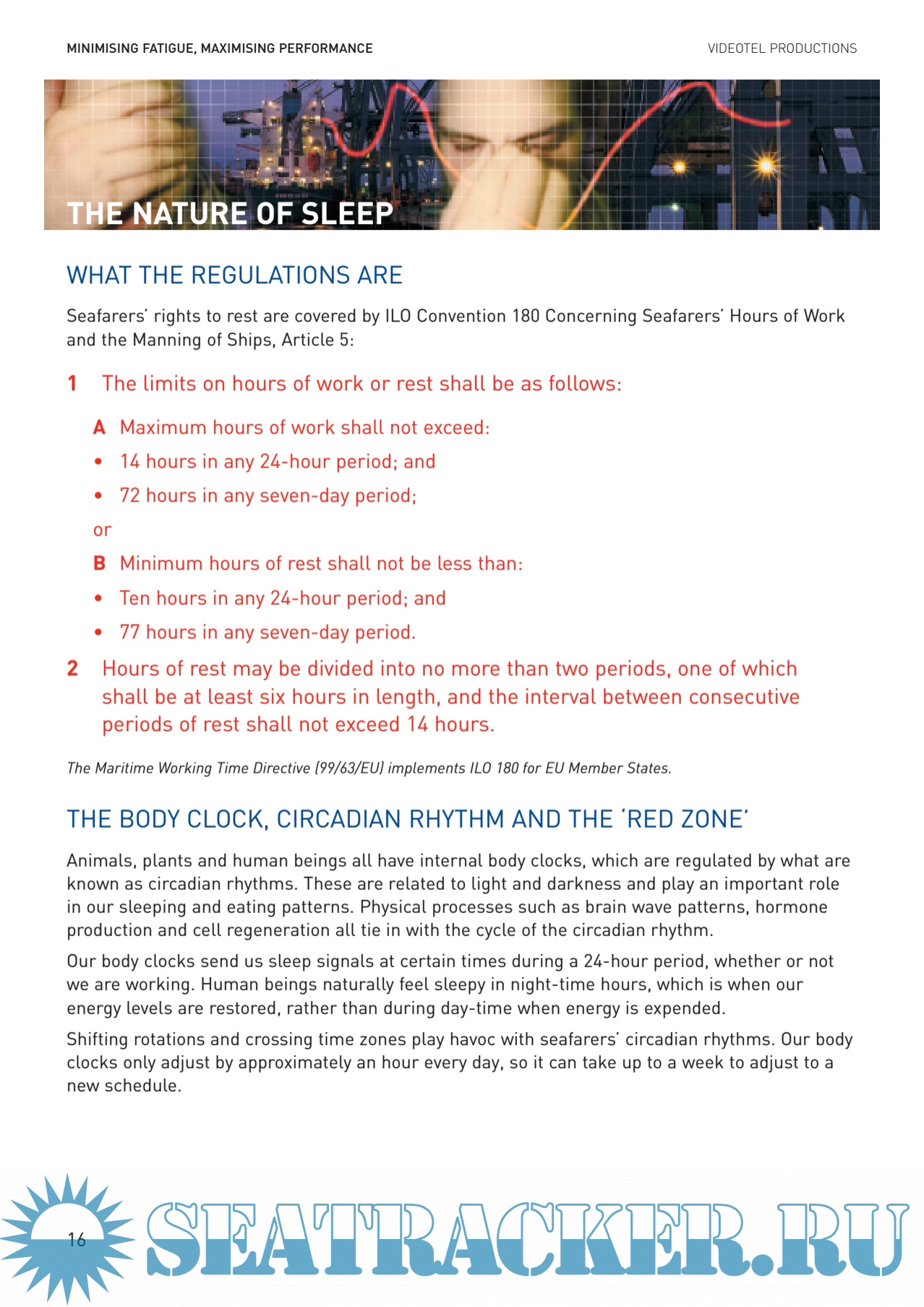 Description: Fatigue is a problem wherever accidents can happen. Every seafarer, whatever their job, maybecome fatigued while at work and at risk of harming themselves or others, or of causingdamage to the vessel. But fatigue can be minimised, and people’s performance maximised, if aship-wide, practical FATIGUE MANAGEMENT SYSTEM is implemented.The benefits of successfully managing fatigue include crewmembers feeling more alert andmaking fewer mistakes, and their managers feeling more confident in the efficient running of theship, and in crewmembers’ safety and morale. As well as reducing the chances of accidents andcasualties, everyone will feel more on top of their work. They will feel less stressed and enjoytheir rest periods more
