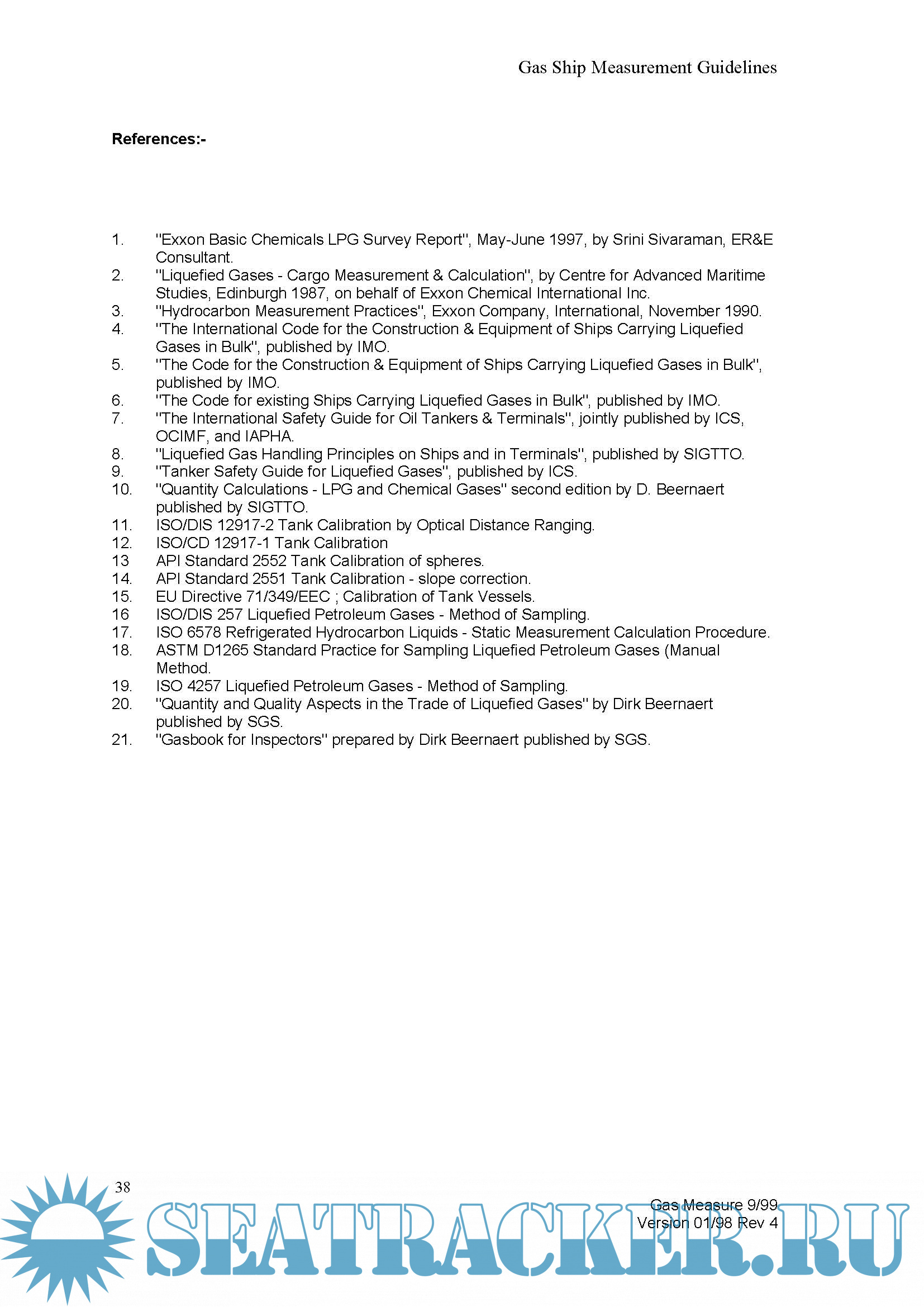 Year: 1999 Language: english Author: SMS Genre: Guide Format: PDF Quality: eBook Pages count: 39 Description: These guidelines were developed in 1998/99 for Exxon Chemical Europe Inc., Basic Chemicals Europe by Captain C. Allport of Standard Marine Services Limited and replace earlier guidance. They are based upon the report and advice from an LPG Measurement Survey conducted by Srini Sivaraman of ER&E in May/June 1997 and incorporate the earlier guidelines for Liquefied Gas Cargo Measurement and Calculation, produced in 1987 for Exxon Chemicals International by the Centre for Advanced Maritime Studies, Edinburgh. The earlier guidelines were adopted by Exxon Chemical International Inc. and approved by Regional Audit in 1988.