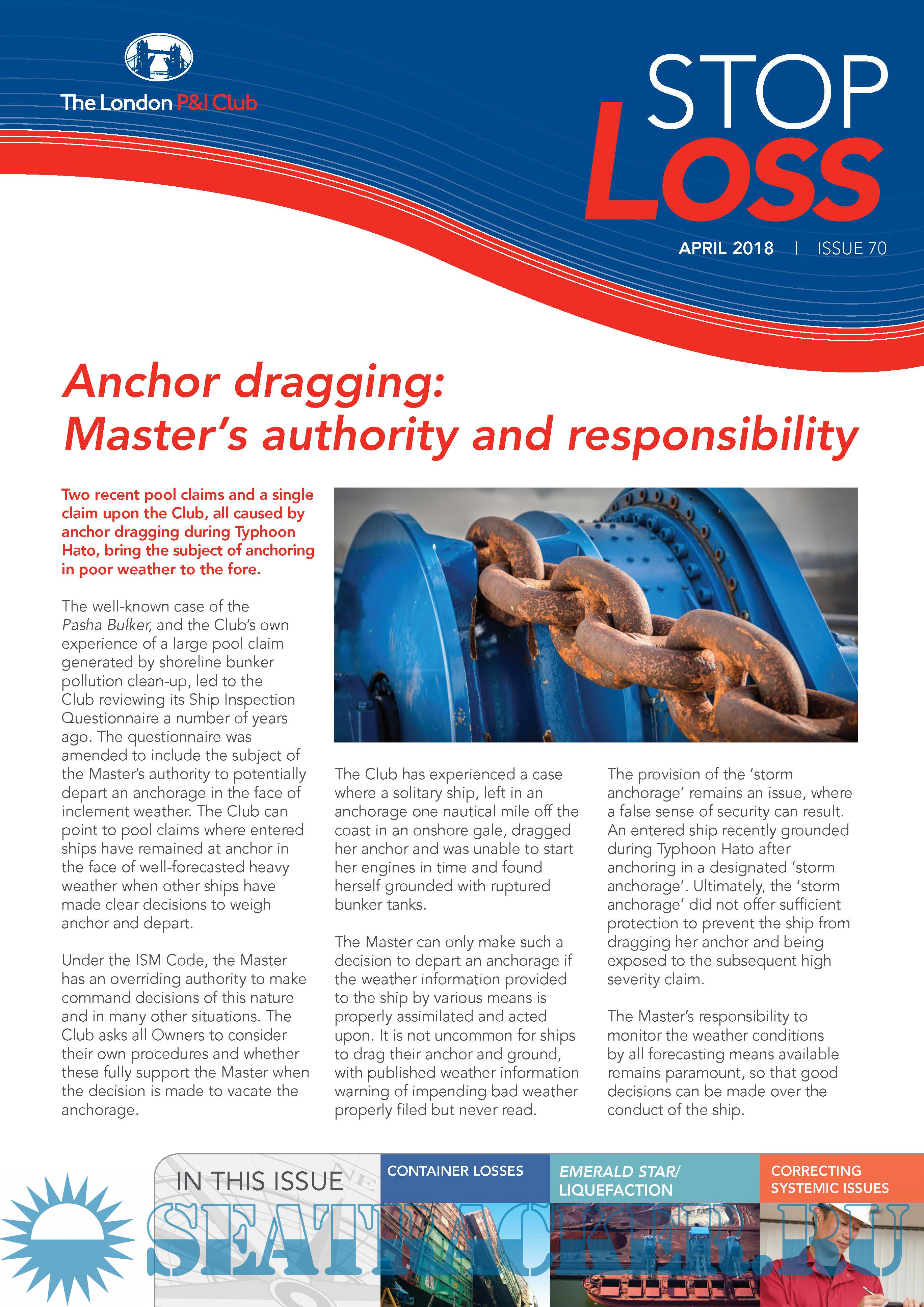 Year: 2018 Language: english Author: The London P&I Club Genre: Collection of books Format: PDF Quality: eBook Pages count: 84 Description: StopLoss Bulletin delivers practical loss prevention advice, drawing from the experience of the Club and our members and from a range of other industry sources.