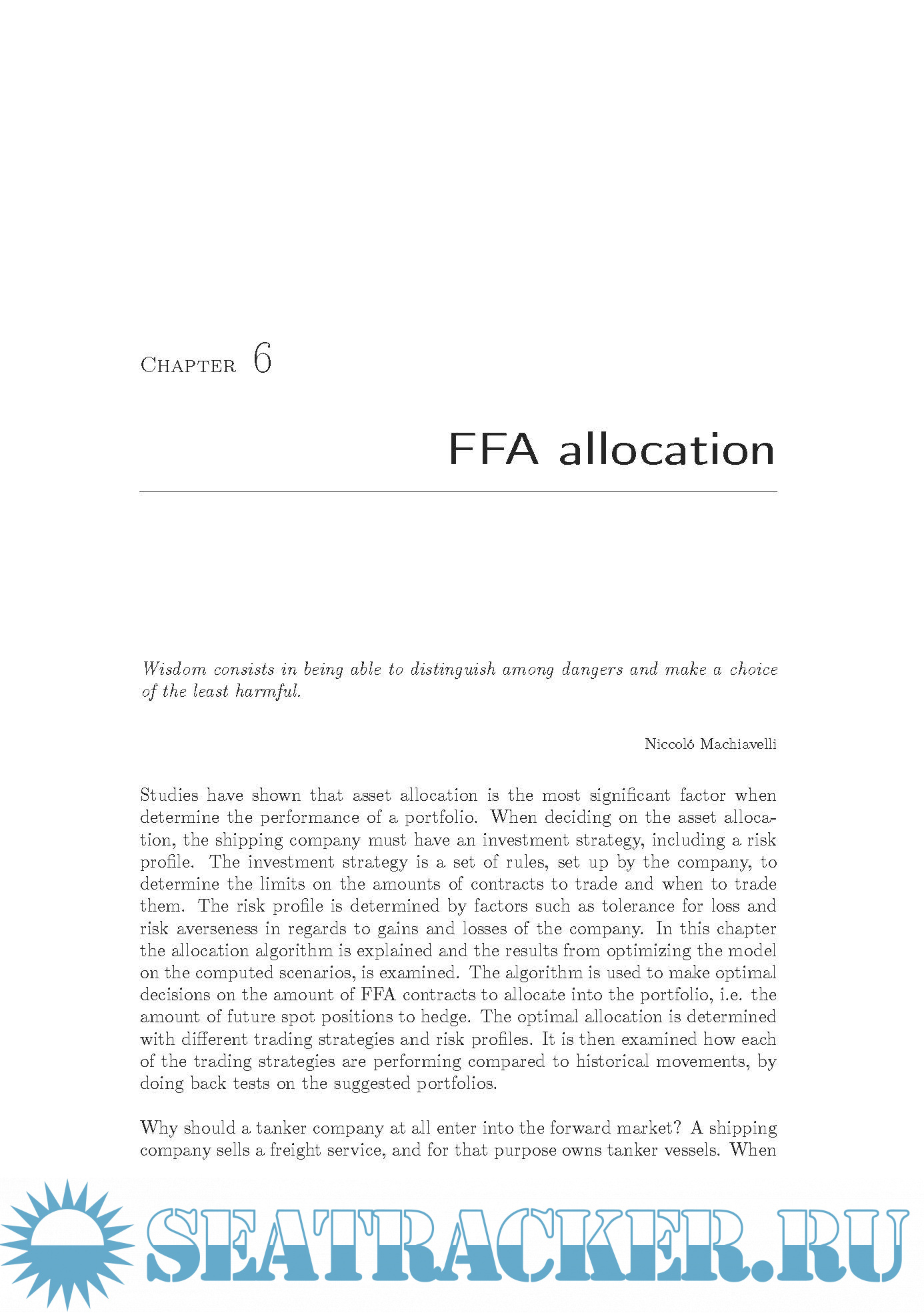 The thesis consists of an introduction into the market of freight rates and financial