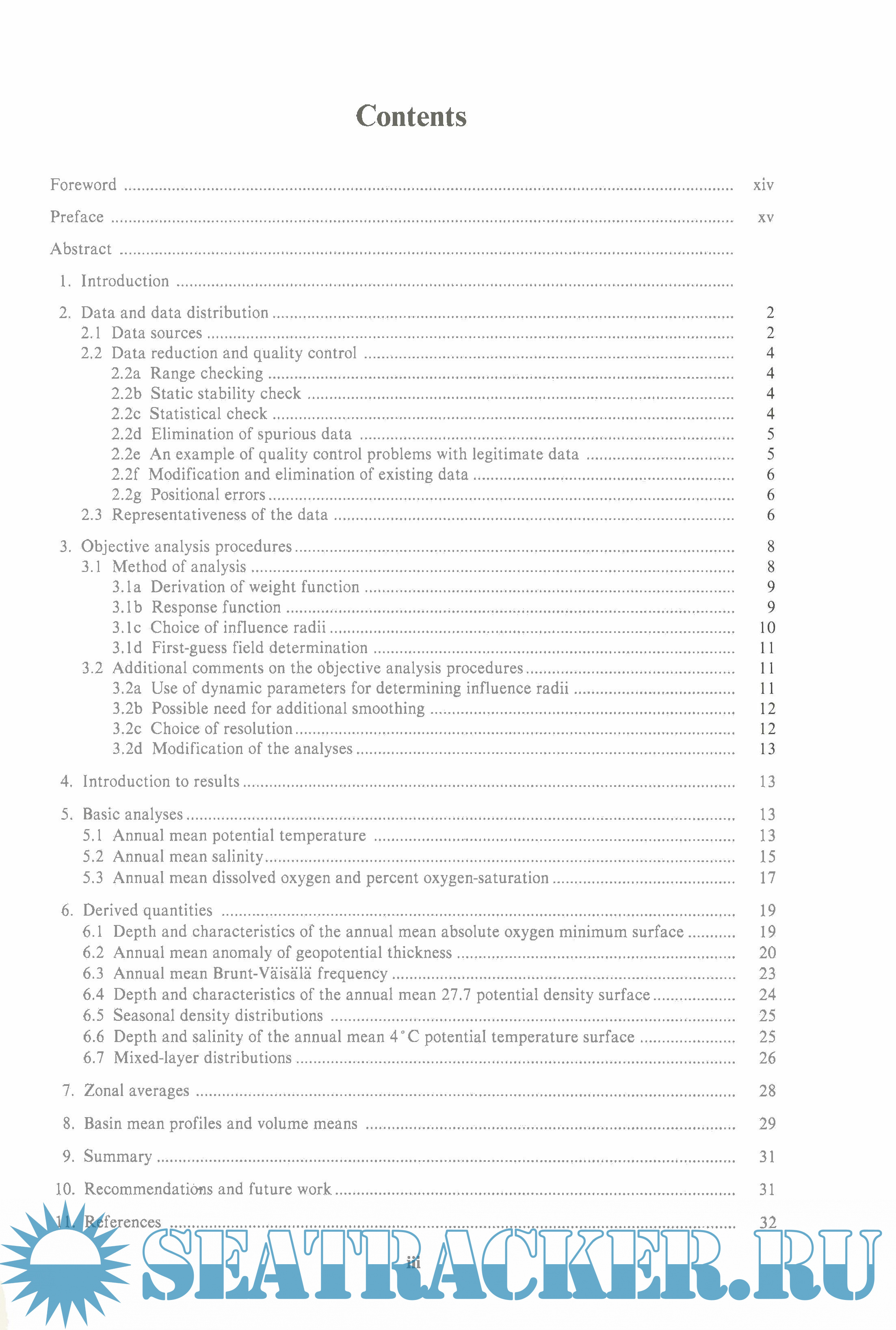 The sources of data used in the project were the Station Data, Mechanical Bathythermograph, and Expendable Bathythermograph files of the National Oceanographic Data Center (NODC) in Washington, D.C., updated through 1977–1978. The raw data were subjected to quality control procedures, averaged by one‐degree squares, and then used as input to an objective analysis procedure that fills in one‐degree squares containing no data and smooths the results. Due to the lack of synoptic observations for the world ocean, the historical data are composited by annual, seasonal, and (for temperature) monthly periods.