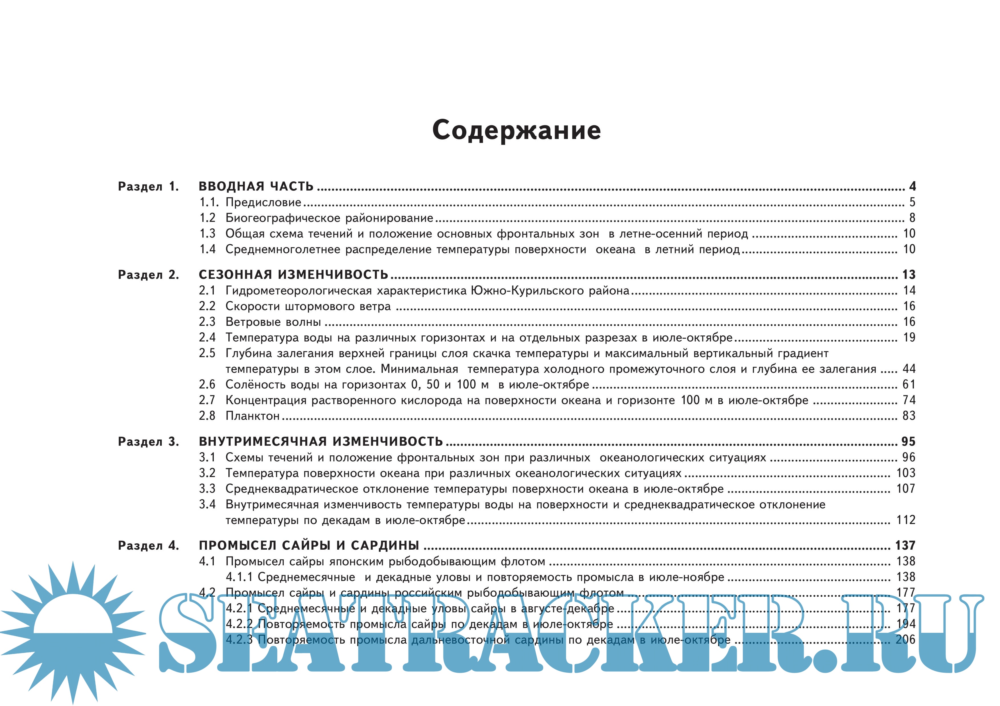 Атлас содержит описание особенностей океанографического режима Южно-Курильского района. Дается его физико-географическая, гидрометеорологическая и биогеографическая характеристика. Описывается сезонная и внутримесячная изменчивость океанографических условий. Приводится характеристика промысла сайры и сардины российским и японским рыбодобывающим флотом.