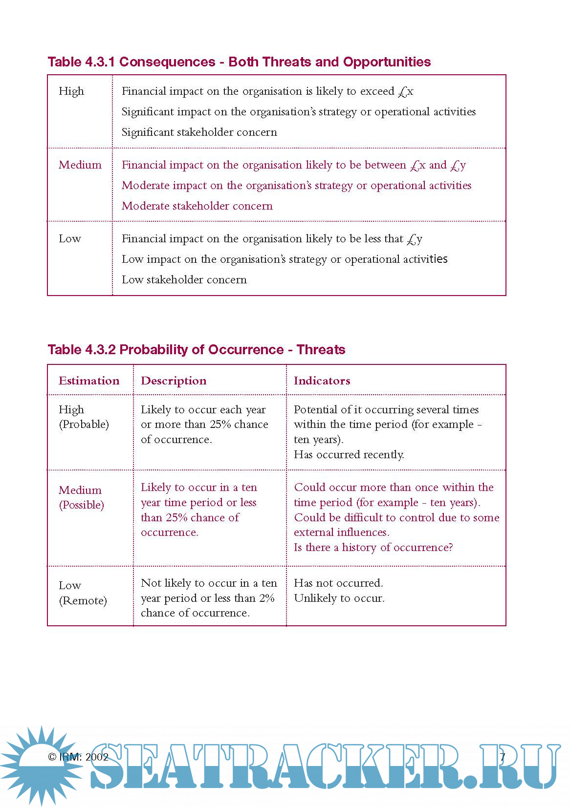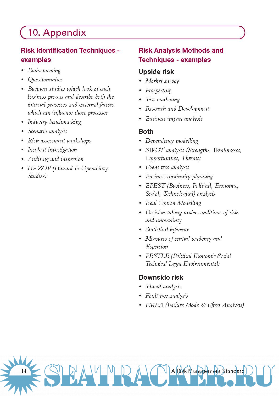 8. Monitoring and Review of the Risk Management Process, page 11