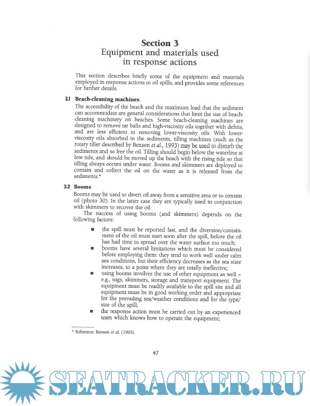 Year: 1997 Language: english Author: IMO Genre: Handbook Publisher: IMO ISBN: 9789280114201 Format: PDF Quality: Scanned pages Pages count: 54 Description: This extensively illustrated field guide is directed towards those who have to respond to oil spills in tropical marine waters. It aims to provide information and general guidance on the response measures to be taken (and on those to be avoided) for the different types of tropical habitat. Background information is given on the fate of spilled oil, characteristics of the different marine habitats and suitable techniques to use to respond to oil spills. The principles of spill response described in this guide are based on case histories and on experiments that have been reported in the scientific literature.