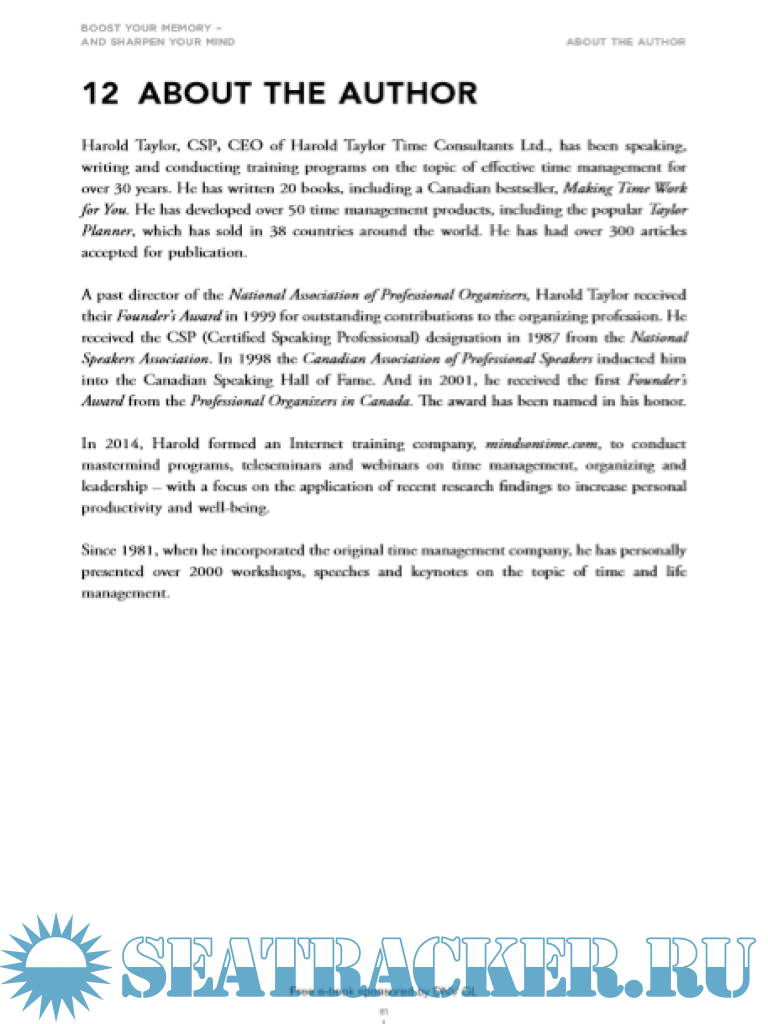 In this brief book Harold Taylor, author of Managing your memory (1988), explains not only how to keep your memory skills intact through lifestyle changes and attitude, but how to increase your powers of memory and recall by using your brain’s natural ability to visualize and associate