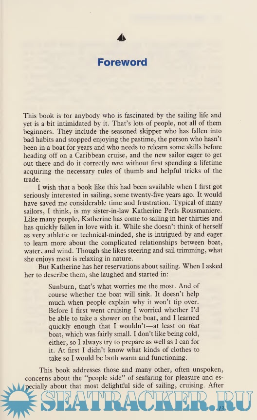 Year: 1985 Language: english Author: John Rousmaniere Genre: Handbook Publisher: Simon & Schuster Edition: First ISBN: 978-0671508876 Format: PDF Quality: Scanned pages Pages count: 326 Description: Surveys the basic sailing equipment, explains how to sail a boat, and offers tips on living comfortably on a sailboat