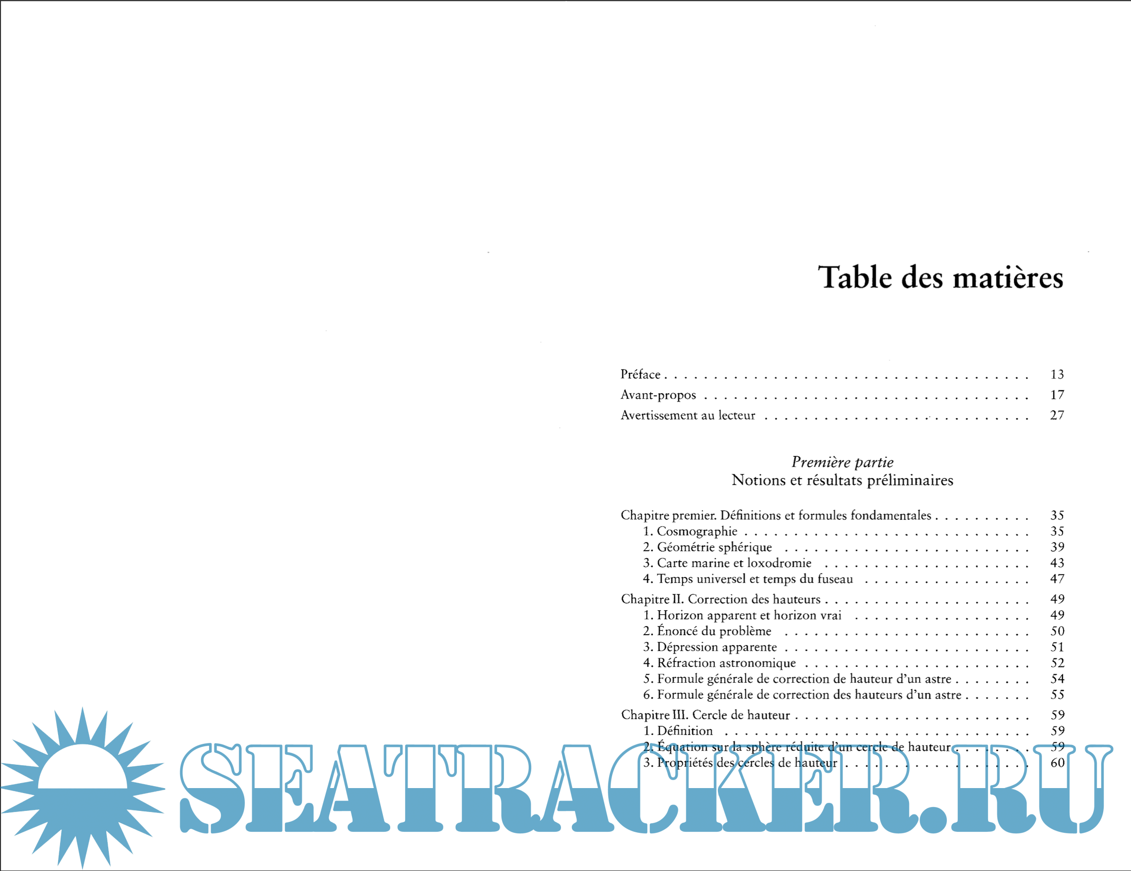 Year: 2000 Language: french Author: Philippe , Bourbon Genre: Manual Publisher: Institut Océanographique Edition: 15/07/2000 ISBN: 978-2-903581-24-4 Format: PDF Quality: OCR without errors Pages count: 318 Description: Destiné aux marins professionnels comme aux plaisanciers et aux amoureux de la voûte céleste, ce traité de navigation astronomique tire parti de l'aide offerte par la micro-informatique en présentant ceux des procédés traditionnels dont l'intérêt demeure et en proposant de nouveaux traitements.Illustré de figures et d'exemples numériques nombreux, l'ouvrage comporte trois (rappels de cosmographie et de navigation à l'estime; méthodes déduites de la théorie de la droite de hauteur; méthodes directes d'obtention du point), une bibliographie et un lexique franco-anglais. Aimed at professional sailors as well as boaters and lovers of the sky, this astronomical navigation treaty takes advantage of the help offered by micro-computing by presenting those of traditional processes whose interest remains and by proposing new treatments. Illustrated with numerous figures and numerical examples, the work comprises three (reminders of cosmography and dead reckoning; methods deduced from the theory of the straight line of height; direct methods of obtaining the point), a bibliography and a French-English lexicon.