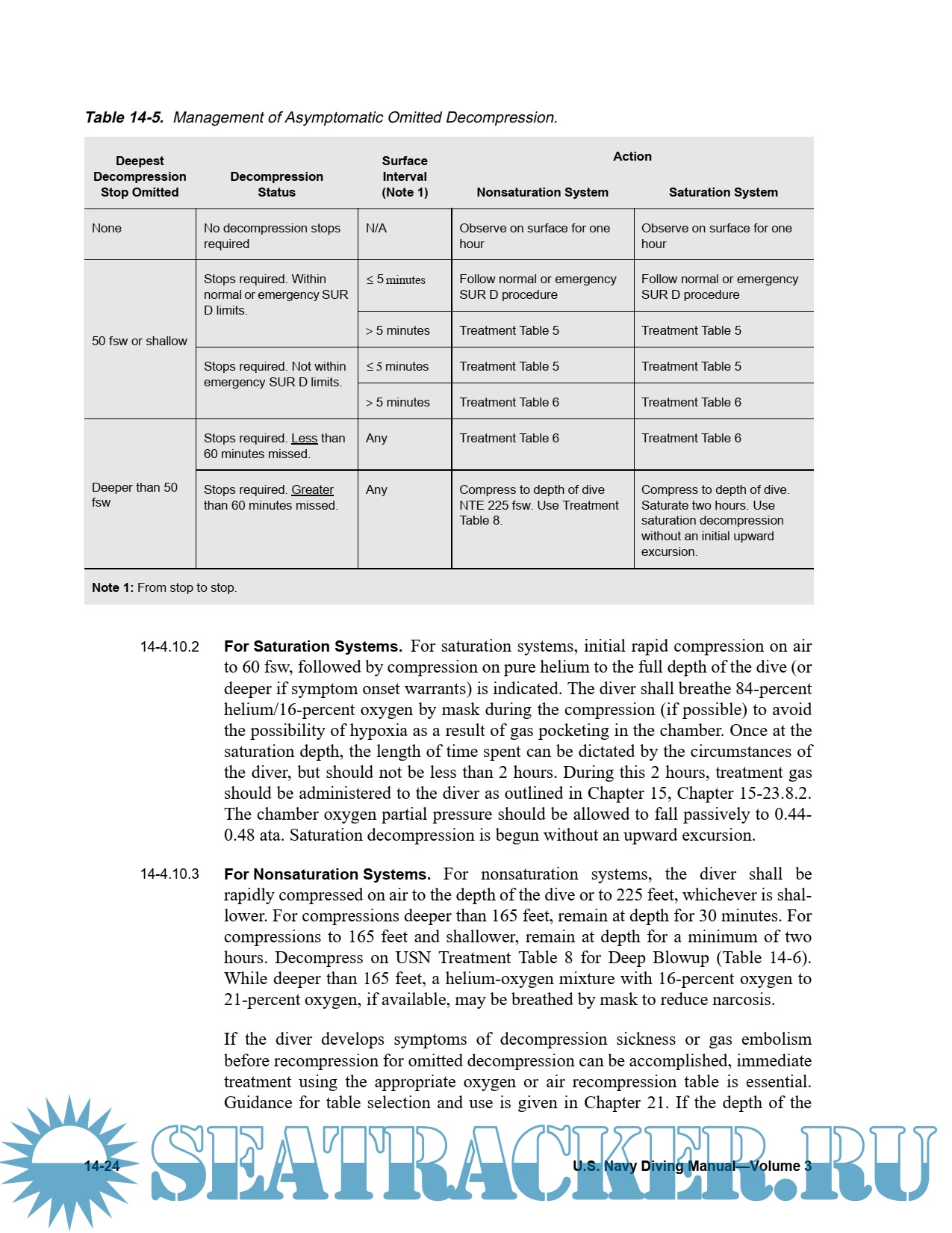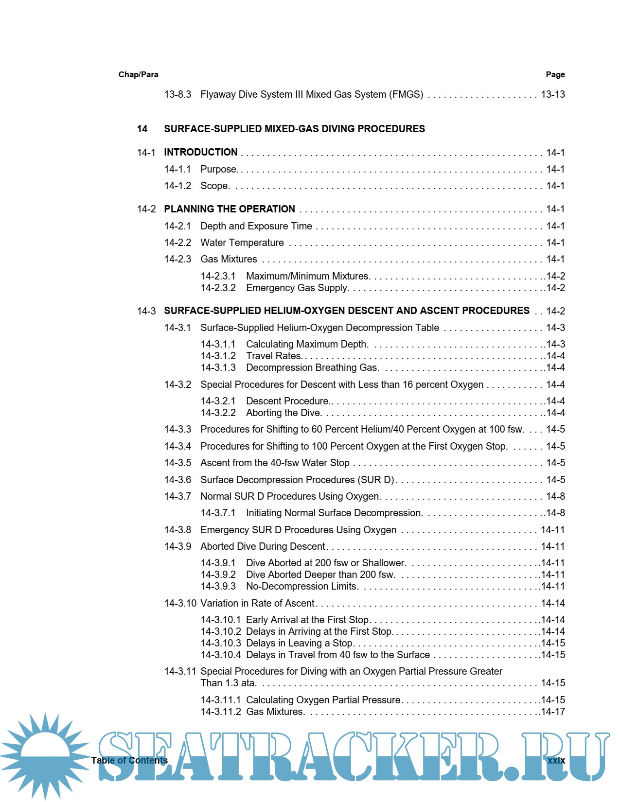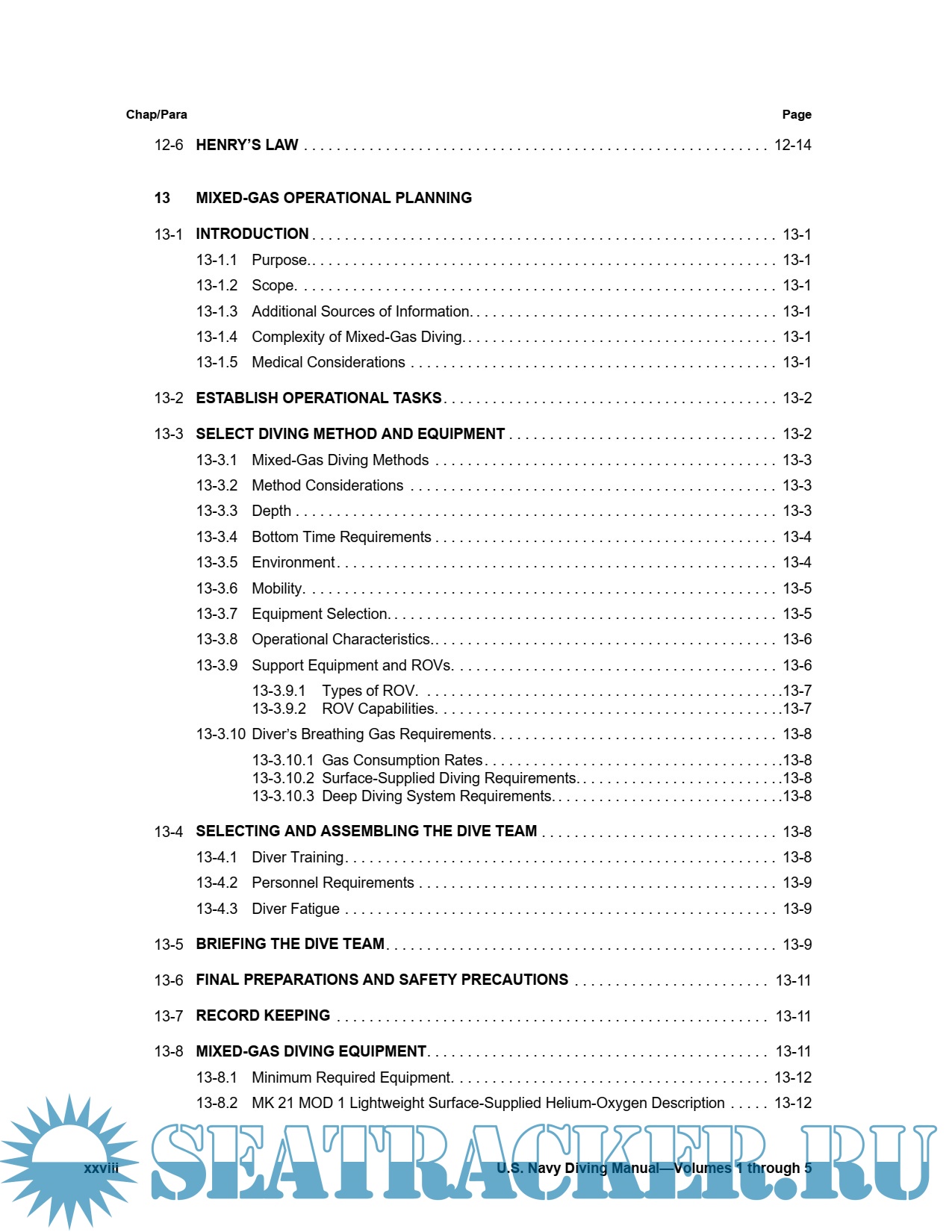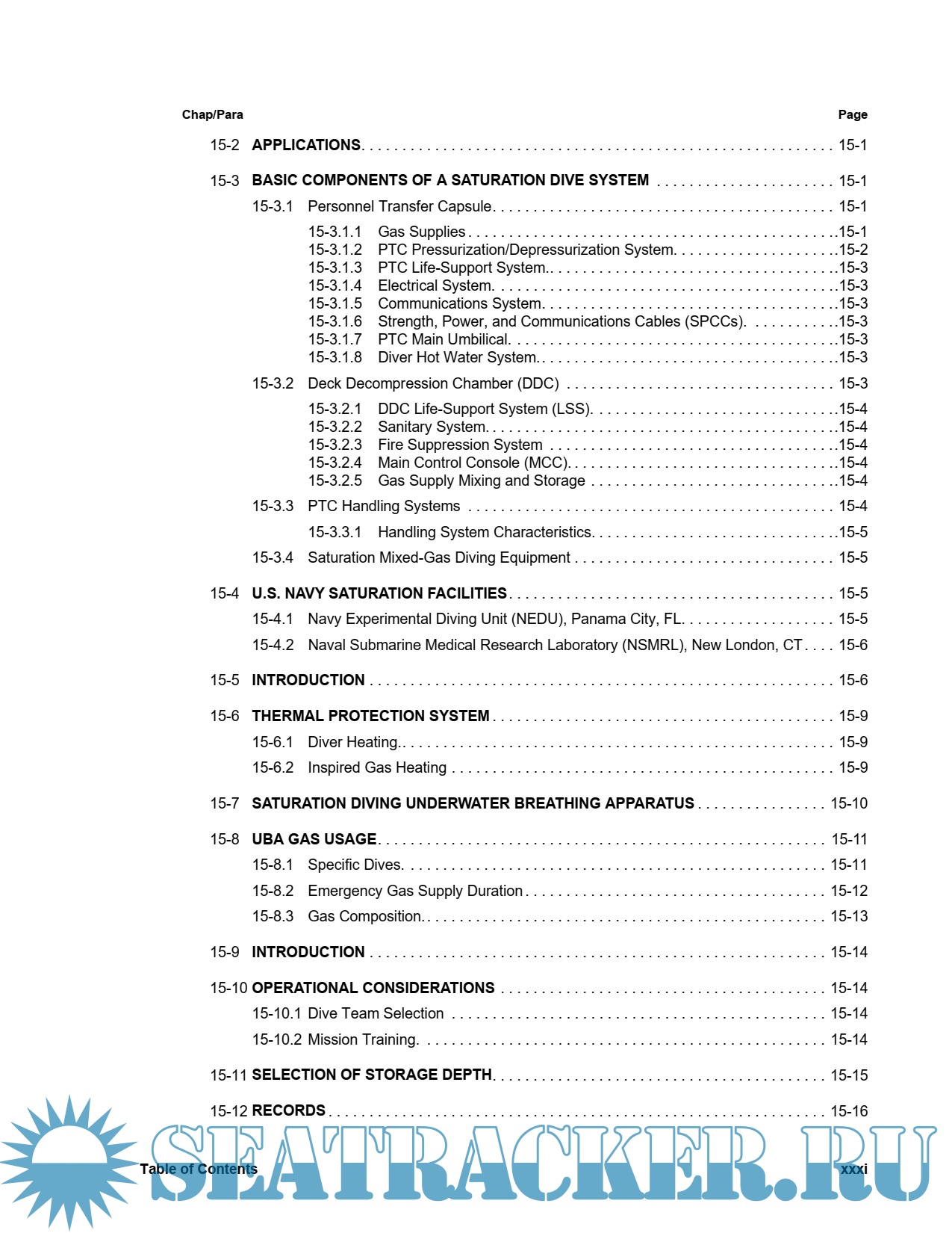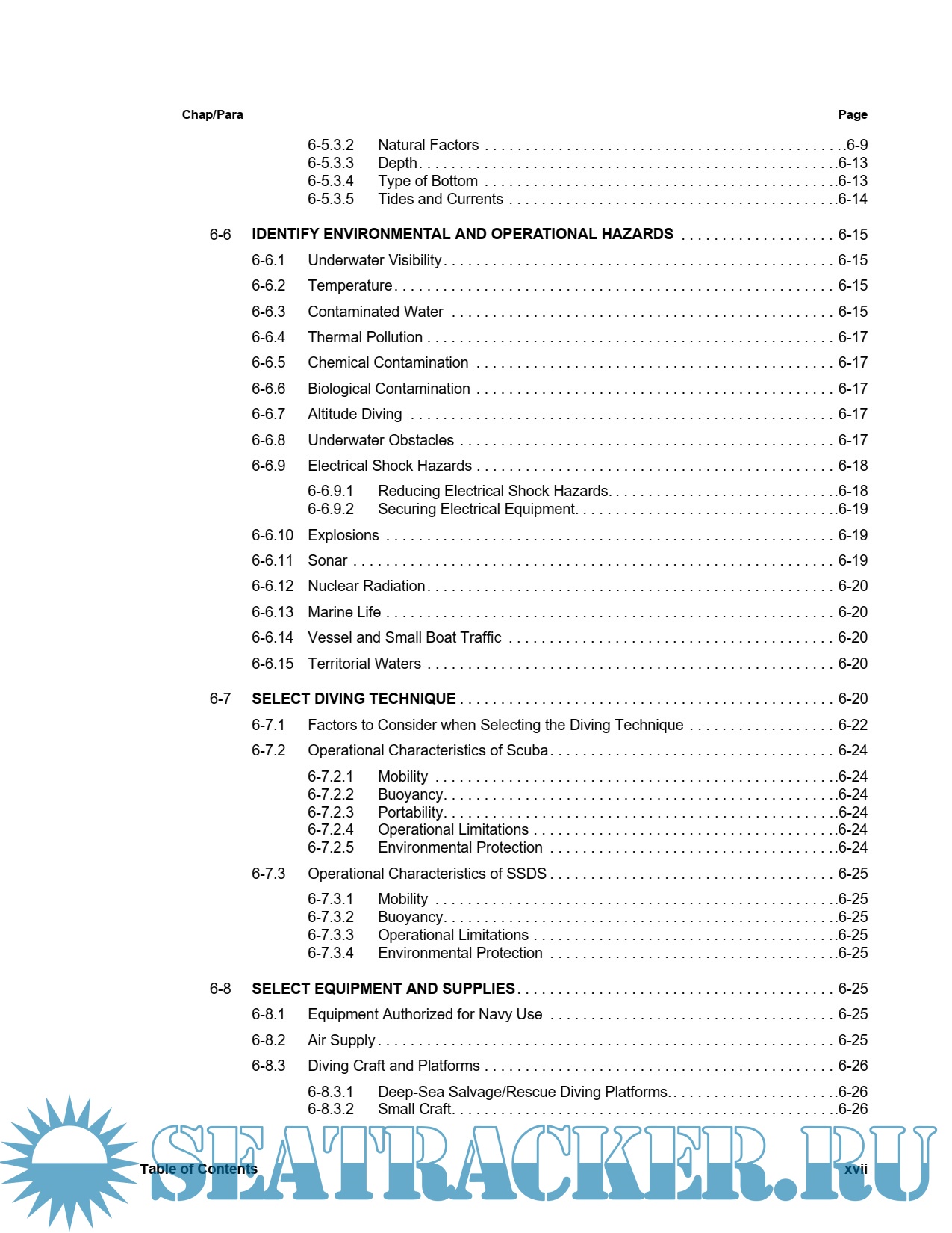 Year: 2000 Language: english Author: Department of the Army Genre: Manual Publisher: Department of the Army Format: PDF Quality: Scanned pages Pages count: 931 Description: Deep diving is underwater diving to a depth beyond the norm accepted by the associated community. In some cases this is a prescribed limit established by an authority, and in others it is associated with a level of certification or training, and it may vary depending on whether the diving is recreational, technical or commercial. Nitrogen narcosis becomes a hazard below 30 metres (98 ft) and hypoxic breathing gas is required below 60 metres (200 ft) to lessen the risk of oxygen toxicity. This edition of Field Manual (FM) 20-11 is an authorized reprint of United States (US) Navy diving manual SS521-AG-PRO-010. It examines almost all aspects of the work of military divers: from the history of diving to medical support for diving descents.