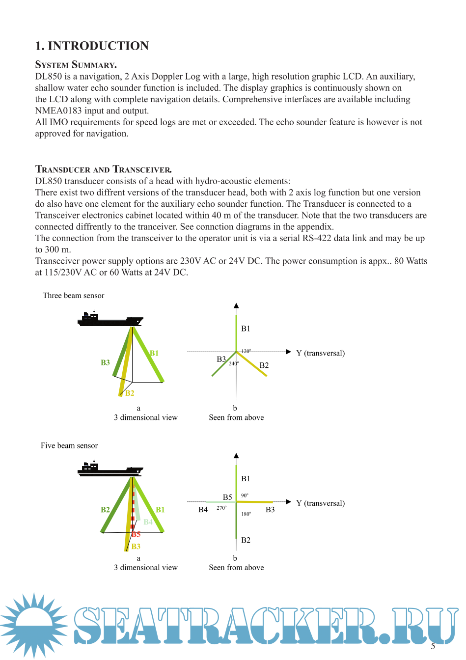Description: DL850 is a navigation, 2 Axis Doppler Log with a large, high resolution graphic LCD. An auxiliary, shallow water echo sounder function is included. The display graphics is continuously shown on the LCD along with complete navigation details. Comprehensive interfaces are available including NMEA0183 input and output.