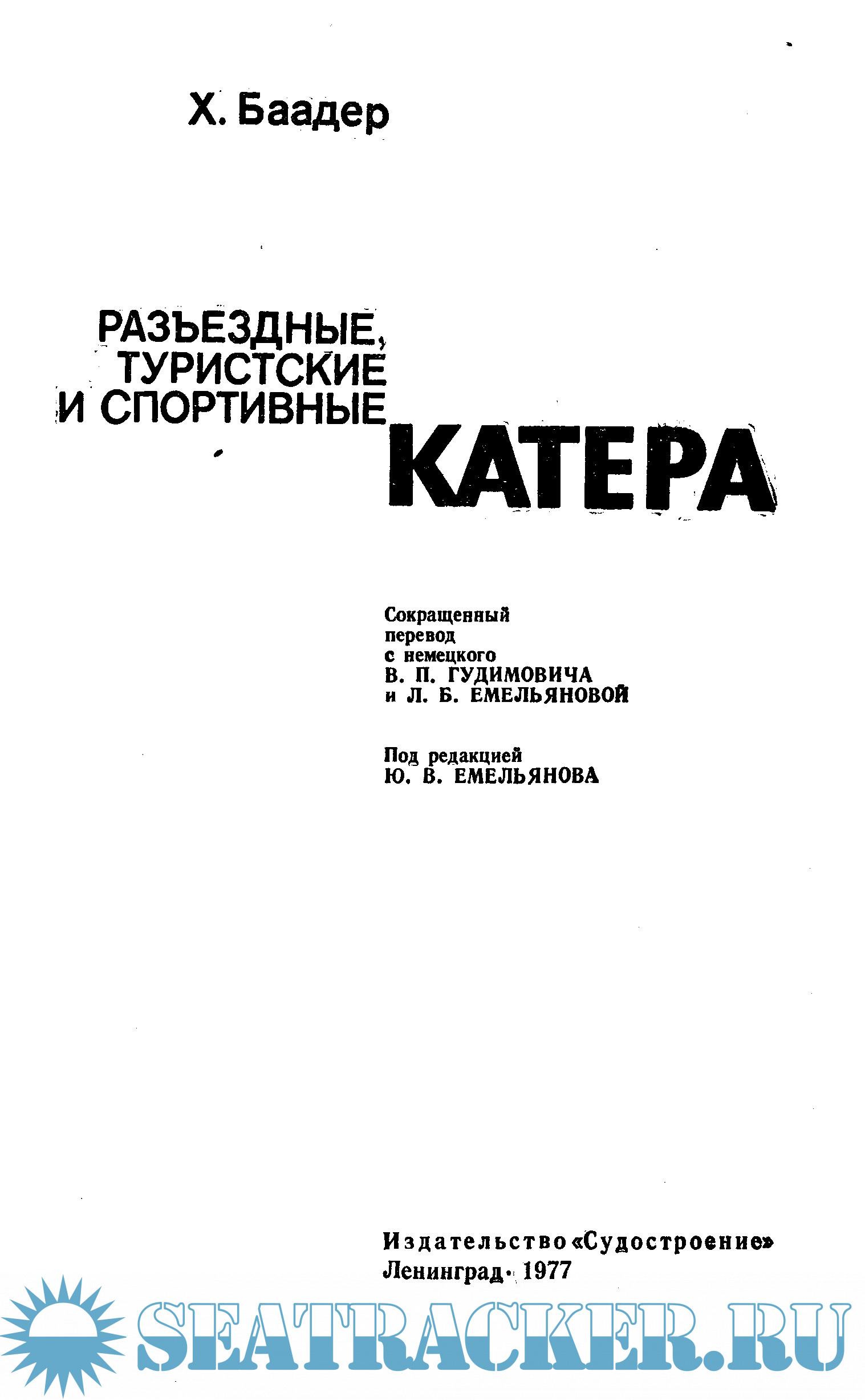 Эта прекрасная книга была выпущена издательством Судостроение на русском языке в 1977 году. Х.Баадер "Разъездные, туристские и спортивные катера".